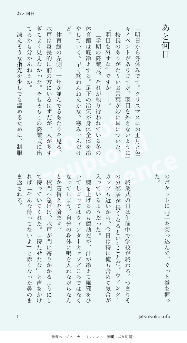 KoKokokofu☆quiet followDONE「あと何日」ワンドロ企画 12/23『冬休み』分終業式の日の話 #洋三 theOcean show all(+2 images) Tap to full screen (size:618x1132).Repost is prohibited Let's send reactions! freqpopularsnackothersPayment processing Replies from the creator Follow creator you care about!☆quiet follow KoKokokofuDONE「除夜の鐘はもう響かない」ワンドロ企画 12/29〜1/4『寒がり 除夜の鐘』分初詣に軍団と行く洋平の話「嘘も方便って言うだろ?」の続き 5 KoKokokofuDONE「全部お前のせい」ワンドロ企画 1/3『寝正月』分同棲してる二人 21ちゃいと23ちゃい⚠️ガッツリ事後 3 KoKokokofuDONE「運任せじゃねえ」ワンドロ企画 12/29〜1/4『運任せ』分とワンドロ企画 1/1『願い事』分なんなのさん(@honmani_nannano)の↓のツイーヨの設定に滾って書きましたhttps://x.com/honmani_nannano/status/1874213891326304709?t=a7D-qwO1YRJdG8oFUQL5WQ&s=19 6 KoKokokofuDONE「幸せの温度」「幸せの名残」の続き19ちゃいと21ちゃいの12/28〜12/29のお話⚠️未成年飲酒の描写がありますが、作者はこれを推奨する意図はございませんお酒は二十歳になってから 10 KoKokokofuDONE「幸せの名残」ワンドロ企画 12/31『幸せ』分大掃除してたら洋平のこと考えちゃう三井さんのお話洋平は回想だけ出てくる。19ちゃいと21ちゃい⚠️読む人をぜっっっったいに選ぶ話です。が、注意書きはネタバレを含むので改行した下の方に書きます。死ネタではありません。喧嘩別れしている洋三。続きの話(幸せの温度)で必ずハピエンになります。なぜなら私がハピエン厨だから 4 KoKokokofuDONE「意気地なし」ワンドロ企画 12/30『踏切』分洋三の両片想いってやつ古代から煎じられてきたであろうパターンを私も煎じてみたかったんです……。 4 related works 砂地のログPAST洋三ワンライのお題「目眩」で書いた話です。高校生の洋三。はじめての外デートの日に体調を崩す洋とお世話する三の話。 8 Jellyfish bonesPASTソフトなCPイラスト 洋三多め 13 efushi_nyanPROGRESS複雑骨折だし身長差もわからないけど頑張って下書きしたけど足切れちゃうので供養 でがらしひよりDOODLEちゅっちゅしてるとこ見つかってもへらっとしてる洋三🤗 3 KoKokokofuDONE「似たものシリウス」ワンドロ企画 12/10『冬の星座』分夜の帰り道。「暗がりの」と同軸の洋三てすが、単体でも読めます。 2 ZObk874MOURNING洋三♀ ※女体化注意シブに上げた夏夜のMagicの、最後のセッシーンのロングバージョン。えっちなとこだけ。唐突に終わります。-------以下が書き加えたところで、そこからは三♀視点になってます。ポル○オを書きたかった。18↑?(yes or no) 5219 B23udbZlpg93Wv8DONE※洋三 新刊サンプル2023/9/24BURST OUT2023/10/1一蓮托生の秘密!R-18!無理矢理表現あり!・夢見勝ちな三さん・やらかし洋・洋が三に縋る描写があります・ハピエン 23 accccc0MENU以前のサンプルに1ページだけえっちページ足したバージョン導入なのでそんなにエロくない。修正はWeb用に強めになってますが、本では黒ノリです。18↑? 6 和奏絵DONE花火見るまだ付き合ってない洋三。不法侵入があるけど、広い心で読んでください。そして、マネしないでください。令和では決して許されません。 4683 recommended works は@ポイピクTRAINING #SD洋三ぬるいですが背後注意某PVをよみつで描いてみたかったもの キムラTRAINING同棲よみつ 3 210cMOURNING高校生×大学生の洋三漫画です。長くなったので供養します。ようへ〜君片思い気味。 ようへ〜君はミチィが自分のこと怖がってるって思ってるからめちゃくちゃ丁寧に距離詰めて欲しいし、ミチィはミチィでようへ〜くんのジェントル態度に1回1回ときめいてほしい〜あと寝ぼけてる時の鉄男呼びはミチィの癖だから水戸くんマジで気にして欲しいけど気にしないで欲しい。 9 歩/零TRAININGhttps://poipiku.com/3231663/8692803.htmlの話の続きですが、よくあるなんちゃらオチ的な内容です。前回の話の終わり方でおしまいにしたいという方は無理して読まなくても問題ありません。なんちゃらオチだからってハピエンではないので、なんでも大丈夫な人向けです。超余談ですが、お題を見た時に先にこのオチのほうを思いついていて、メインはそこから遡って考えました。 931 syakedaikon0DONE洋三ワンライのお題「意気地なし」嘘つきでずるい洋三の話です 3044 syakedaikon0DONE洋三(こいつ俺のこと好きだろ……)と思っている悪い洋三が火遊びにもならない遊びをしようとする話です。ちょっと性格悪めなので注意。 5316 syakedaikon0DONE洋三 お題「留守電」両片思い洋三+桜木です 3753 YHY_1baninDOODLE성공률 100%! 정대만이 뭘 죽어도 허락 안 해줄때 쓰는 양군의 필살기양호열이...여장?하고... 끼를? 부립니다...대만이는 안나오지만 호열대만입니다...근데 호댐러이실수록 안 괜찮으실 거 같아요......정말저엉~~~말 뭐든지 다 괜찮으신 분만...PW: OK? (y/n) ほむらDONE以前Twitterにあげていた花←洋←三のお話(第4話/最終話)です。⚠️19歳の飲酒表現があります⚠️長々と読んでいただきありがとうございました! 4705
