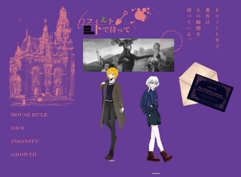 genkai_kyabe☆quiet followINFO••┈┈┈┈••クトゥルフ神話TRPG「6フィート下で待って」KP/KPC:キャベツ/Reggie IsrafilPL/PC:灯さん/Margaret Appleyard ⇢𝐞𝐧𝐝1☆。.:*・゜••┈┈┈┈••「今度はどこに行きたいか考えておけよ、ガル」 Tap to full screen (size:1046x769).Repost is prohibited Let's send reactions! freqpopularsnackothersPayment processing Replies from the creator Follow creator you care about!☆quiet follow genkai_kyabeINFO••┈┈┈┈••クトゥルフ神話TRPG「灰奏」KP/KPC:キャベツ/怒木 豪PL/PC:しおたさん/阿月 栞⇢𝐞𝐧𝐝☆。.:*・゜••┈┈┈┈••「栞スペシャルはもう飲まないからな」 2 genkai_kyabeINFO••┈┈┈┈••クトゥルフ神話TRPG「6フィート下で待って」KP/KPC:キャベツ/Reggie IsrafilPL/PC:灯さん/Margaret Appleyard ⇢𝐞𝐧𝐝1☆。.:*・゜••┈┈┈┈••「今度はどこに行きたいか考えておけよ、ガル」 genkai_kyabeDOODLECoC『Paranormal Crime』さとう鍋様作KPまるめろPL/PC・◡・/Mira Walkerキャベツ/Ariel Sweezyどうしても踊ってほしい/Ashley Packard七月馬鹿/Clarissa Nguyen犬撫ひより/Ensata Nileアイシー/Misty D Ranunculus⇢⇢全生還 genkai_kyabeINFO••┈┈┈┈••クトゥルフ神話TRPG「虚構水銀注射-Mercurius Injection-」KP:ユラヰさんPL/PC:キャベツ/凩 真昼⇢𝐞𝐧𝐝☆。.:*・゜••┈┈┈┈••「うんうん、これもまた人生ですね~」 genkai_kyabeINFOタイマンday~~~~!!1日目!!警察タイマンと裏社会タイマンおもろかった。温度差。犬猿(過去形)と仲良し~かわいい~~~~!!!!!!!!!!!これからも仲良くしよね。 3 genkai_kyabeINFO••┈┈┈┈••クトゥルフ神話TRPG「しゃーべっとる〜む」KP:🦈さんPL/PC:キャベツ/丑生 はとり⇢𝐞𝐧𝐝☆。.:*・゜••┈┈┈┈••死んだ!!!!!!!!!!!!!!!!!!こいつはおもちゃになってもらいます。