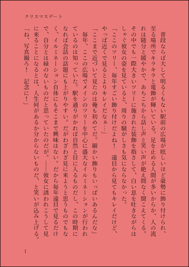 やのはら☆quiet followDONE燗流夢。付き合ってる。クリスマスデートのお話。 ##創作夢 show all(+3 images) Tap to full screen (size:630x888).Repost is prohibited Let's send reactions! freqpopularsnackothersPayment processing Replies from the creator Follow creator you care about!☆quiet follow やのはらDOODLEハロウィン!昔仲間からおふざけ罰ゲームでメイド服を着せられた相模 やのはらDONEルナフレーナの2話目?というより なんか短い話。美術品だけでなくこういうのも狙いそうだなって思ったので 3782 やのはらPROGRESS心明同人誌(コピ本予定)「沈(しずむ)」のサンプルですここから文章を整える予定です しっかり人が死ぬので血や死亡描写等が大丈夫な人向け ※心悦と明明の出会いの話です ほぼ本編みたいなもん 1379 やのはらDONEよなよな宇宙を見に行こうで使ったスチルです(ネタバレなし) やのはらPROGRESS透也と貴大が人を拷問する話⚠暴力、血、透也と貴大が人を痛めつけています 3667 やのはらMOURNING心悦と明明が初めて会った時の話。めちゃ途中で終わるけど 完成するか分からないので供養も兼ねて 2051