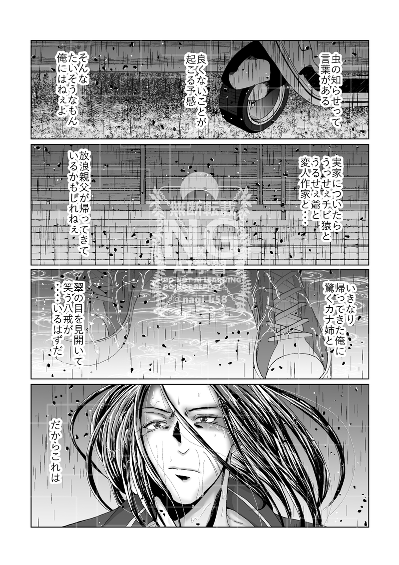 nagi_k58☆quiet followDONE【湯記長編:1話】5 years ago(後編)※流血シーンが多分に出てきますので苦手な方はご注意ください!!浄八ベースの湯記。序章→1話(前編)とお読みください。次回は5月1日更新予定となります。次回からは八戒の視点で過去から現代までをさらいます。それぞれの過去をたどって現在の設定につながっていくイメージです。 #浄八 #58 #湯記 #KT #捲天 show all(+14 images) Tap to full screen (size:1500x2122).Repost is prohibited Let's send reactions! freqpopularsnackothersPayment processing Replies from the creator Follow creator you care about!☆quiet follow nagi_k58PROGRESSポリネシアン3日目は「濃厚なキス解禁(つまりディープ)」なので、めっちゃちゅっちゅちゅっちゅしまくる…入りの部分をサンプルでどーぞ! 9 nagi_k58MAIKING左手は過去の運気、右手はこれから先の運気…らしいです生命線。。。最初、右と左を描き間違えて、全修正しました💦時間かかっちゃったなぁ・・・申し訳ない💦 3 nagi_k58DONE【黒大豆:浄八】マフィア風な2人のパロ。くじありがとうございます!!新規絵ありがとうございます!!!からの勢いで描きました✨お互いの執着と共依存を存分に描けて楽しかったです。TLにUPしたのをまとめました。こっちの方が多分、見やすい(゚д゚)(。_。)ウン 11 nagi_k58DOODLE大学生風浄八ということは・・・付き合い始めのこんなうぶな浄八を58作品見れるという認識であっているだろうか。。。お待ちしています!!!病院前なので、ささっと描いたので雑です💦 2 nagi_k58MAIKING側近用・・にょた8 4 nagi_k58DONE【湯記長編:2話】After the tears...②完結です!体を壊してしまい、更新が遅くなってしまって申し訳ありませんでした💦また、これから原稿期間に入るため、更新がしばらく先となります。原稿が早く終わったら早めに着手しますので、よろしくお願いいたします><💦 10 related works 箕作(倉庫)DOODLEすけべ練習。セリフは各自いれてくれ、、、、、 nagi_k58PROGRESSせっかくなんで悟浄さんも。八戒と違い、服を着ていないのでベタの×マークがないwwwwこの後の八戒さん、ベタが多くて×印だらけでぼろぼろに見える(笑) 81 nagi_k58DONE【浄八】挿絵入れて完成しました!文字書きの友人から、私へのクリスマスプレゼントで浄八小説が届いたのでUP。しかし、なぜか私への仕打ちが鬼畜で…友人の私いじりの箇所は力の限り見なかったことに!スルースキル全開にしていただけると助かります。 17 nagi_k58INFO【2月14日応募締め切り】フォロワーさんに感謝を込めて抽選会の景品が出そろいました!応募は私のXホームにクリップしてあるツイートをRPで完了です✨応募締め切りは明日までとなりますー!よろしくお願いいたします。 19 とうりかTRAINING浄×八=? n7_dziMOURNING浄八 鍵に載せてたやつ nagi_k58DOODLE【浄八イラスト集②】すっかり🍦が8の🍒に垂れたのを舐めている5の落書きを出すといって忘れておりました・・・そこまでEROではないので表でいいかな~(゚д゚)(。_。)ウン 6 くろんDOODLE58KT 58 nagi_k58DONE【湯記長編】序章(1話UP3月1日予定)序章部分とキャラ設定です。基本は湯記の世界観の中で動き、浄八がくっつくまでのストーリーです。ただ、天蓬と捲簾に過去の記憶があるので少し違った雰囲気でお届けできればなと思います。序章を見て苦手な方は回れ右で💦次回更新、1話は悟浄の過去編から入ります。3月1日UPを目指して頑張りまっす!!! 6