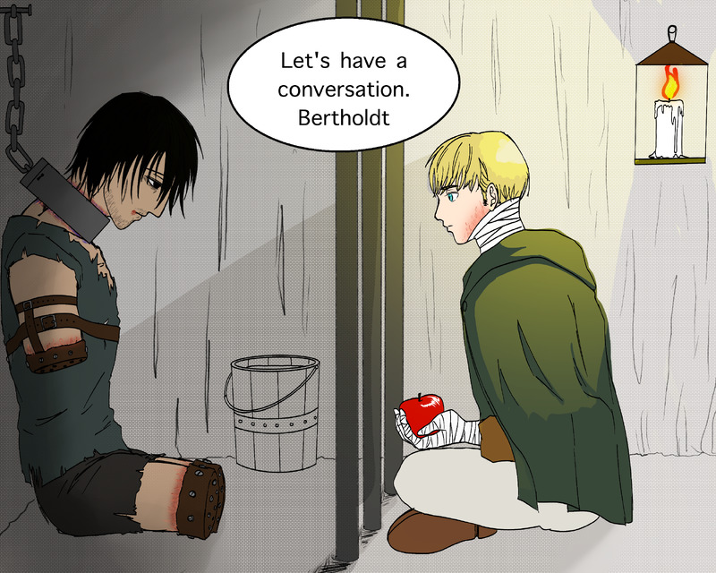 Bertholdt was captured and imprisoned in paradis. He got tortured for a year in underground prison. But he didn't turned.