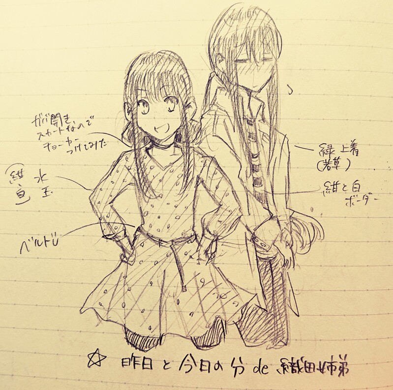 真嶋タツロー☆quiet followDOODLE正気に戻った私『そういうのいいから』なんちゃって落書きえ?なんのこと??っていうそこのあなた!ええと、これはわしの私服+αみたいな、やつですよ。まともに着こなせてない系マスターなので…ちょっと二人を呼び出してみましたよと……ハイ #FGO ##タツローぐだぐだだいありー Tap to full screen (size:2446x2427).Repost is prohibited Let's send reactions! freqpopularsnackothersPayment processing Replies from the creator Follow creator you care about!☆quiet follow 真嶋タツローBLANKおジャミさんの妹(想像)の姿も込みなんですが、VDC後にもし会える機会があったらな…って思っていた時期が私にもありました。ほんの2コマ(?)しかし私は彼女ではないため兄になんて声をかけるんだろうという疑問符がずっと消えず、そのままお蔵入りに。そのなかでおジャミさんの顔が大変気に入ってしまったので、そこからヘッダーへ…って感じです。 真嶋タツローDOODLE沖田さんとノッブ 真嶋タツローDOODLEキャプテン・ネモ 真嶋タツローDOODLE正気に戻った私『そういうのいいから』なんちゃって落書きえ?なんのこと??っていうそこのあなた!ええと、これはわしの私服+αみたいな、やつですよ。まともに着こなせてない系マスターなので…ちょっと二人を呼び出してみましたよと……ハイ 真嶋タツローDONE『なのじゃ』もうすぐ終わっちゃうけども!今年もまた楽しい一日でした😊4色アナログとか久々にしたけど、描いてると気持ちがいいね…!っていうことで、今年はノッブでリメイクハロウィーン!!! 真嶋タツローPAST『ぐだハロ(過去絵)』2年前の。リメイクしたい(ということで投げ) related works 真嶋タツローDOODLE一さんのらくがき練習。 真嶋タツローPAST『暑中見舞い(過去形)』これは暑中見舞いのつもりで描いた織田家。気づいたらアオハルしてたなんて言えない。そして、気づいたら2ヶ月過ぎているだなんてワロエナイ。その先でイベントして信勝育ててるよ!なんてクソデカボイスメッセージを当時へ送りたい。 真嶋タツローDOODLE正気に戻った私『そういうのいいから』なんちゃって落書きえ?なんのこと??っていうそこのあなた!ええと、これはわしの私服+αみたいな、やつですよ。まともに着こなせてない系マスターなので…ちょっと二人を呼び出してみましたよと……ハイ 真嶋タツローDONE『なのじゃ』もうすぐ終わっちゃうけども!今年もまた楽しい一日でした😊4色アナログとか久々にしたけど、描いてると気持ちがいいね…!っていうことで、今年はノッブでリメイクハロウィーン!!! 真嶋タツローDOODLE『まさか1週間せぬまま100になるとはね』しかも☆1でこの勢い…私史上最速だったような。本当に、ありがとうな、信勝君。しかし、すごいジト目で「僕が100なのは解釈違いですよね、姉上の間違いですよね?」と言われたような…。いや、姉上と共に歩んでもらうぞ、これから。という、落書き。 2 真嶋タツローDOODLE『後半戦!!!1』いやいや、はじめから情報量というか、メンバーがみんな濃いうえに好きだから、突っ込みがまだほんの一部にすぎないんだが!だが!!!犯人…というか、お米の開発自体は、ダヴィンチちゃんですね。開発自体は、です。最後まで読了済みなので、続きもちょこちょこ描けたらなあ。みなさんは高難易度やりましたか?追加ボイスも聞きましたか?あれはどっちも泣きます。 5 recommended works おはなちゃんPAST #アナログ #屋外 #創作 aoi_hal332DOODLEネクタイはリボンで(*´ω`*)#オリジナル#アナログ nAmuTIREDはなちゃん volke.PAST去年描いたうちの子『ヘルミーネ・トレーガー』ちゃんのアナログ絵です♪#うちの子 #ヘルミーネ・トレーガー #オリジナル #オリキャラ #創作 #創作キャラ #アナログ #アナログ絵 #義手 #過去絵 藤宮 瑠果DOODLE厚藤四郎 おにぎりたろうMOURNINGいつもの擬人化エロホモラクガキ描き殴りそれでもよければどうぞ#腐向け #擬人化 #R18 #アナログ #ラクガキ 9 Do not Repost・東龍PASTドラクエ5。奴隷場でかばうヘンリー。 トムテの物置PROGRESS軍人さん yuuka_amDONEARTs*LABo様主催のあお展2019にて展示させていただいた絵です。