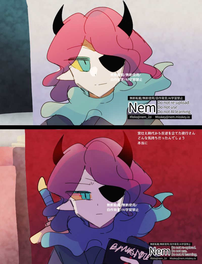 nemophila2zi 二次創作おきば掲載している絵の転載、複製、改変、無断使用、AI学習は禁止です Do not repost. ☆quiet follow Yell with Emoji POIPOI 120