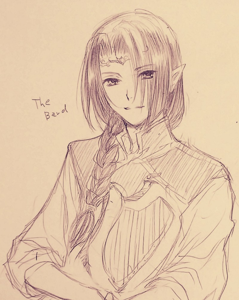 今月は某MMOで長年使ってる吟遊詩人キャラのお誕生日がありましたので、うちの子おたおめ絵。