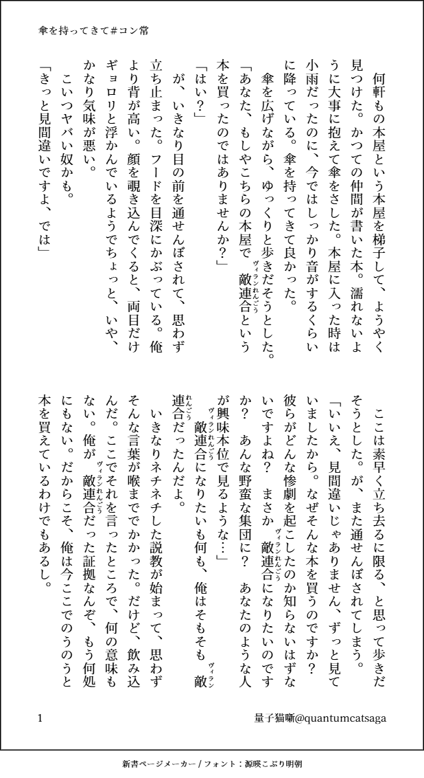 quantumcatsaga☆quiet followDONE原作軸、未来捏造のコン常です全然CPっぽくないですがコン常です #コン常 continuity show all(+3 images) Tap to full screen (size:618x1132).Repost is prohibited Let's send reactions! freqpopularsnackothersPayment processing Replies from the creator Follow creator you care about!☆quiet follow quantumcatsagaDONEホー常ワンドロワンライ様より、お題「アルコール」「30歳」お借りしました!付き合ってないホー常です。 2 quantumcatsagaDOODLE常くんに指ハートして欲しかった… quantumcatsagaDONEホー常ワンドロワンライ様よりお題「駄々をこねる」「気が早い」お借りしました!時間かかってしまいましたが、なんとか…… 4 quantumcatsagaDOODLEカッコよく描きたかった…バタッ quantumcatsagaDONEエクスで流行ってるやつやってみた3時間かけてこの体たらくだけどなんか満足したのでヨシ! quantumcatsagaDONEホー常ワンドロワンライ様よりお題「寝言」お借りしました。ゆるふわ設定ですが公安委員長ホ×プロヒ常くんです。常くんお酒弱くても強くても良い。 2 related works quantumcatsagaDONE原作軸、未来捏造のコン常です全然CPっぽくないですがコン常です 4 m0ny_r0nyMOURNINGテストも兼ねて、ふせったーにのせてたやつ。おるふぉと🐥くんの話の続きで考えてたけど、挫折した断片コン常😞▶︎元の話→ https://privatter.net/p/9061100 2200 m0ny_r0nyMAIKING◆コン常🔞/amour en cage:陥落(仮)身体はとっくに受け入れていて、あとは心が折れるのを待つだけ。あと少し。的なシーンの下書き。以前ベッターに上げた【監禁調教コン常🔞】の続きで考えてるやつです。時間軸としては↑からもうちょい後の話。ちょっとお触りしてるだけなので、🔞付けるほどでもないのですが、話の流れ的に一応…🙄 1825 m0ny_r0nyMAIKING◆コン常:Dom/Sub現パロなんの障害もなく甘イチャする🎭🐥が見たくて考えてる話。⚠︎個性はあるけどヒーローはいない世界線。⚠︎世界的マジシャン×唯一のアシスタント、という設定ですが、この話にはまったく関係ありません🙄⚠︎Dom🎭×Sub🐥。独自解釈かつDom/Sub要素は薄めです。設定だけは色々考えてるので、気が向いたら続き書こうと思います。 6696