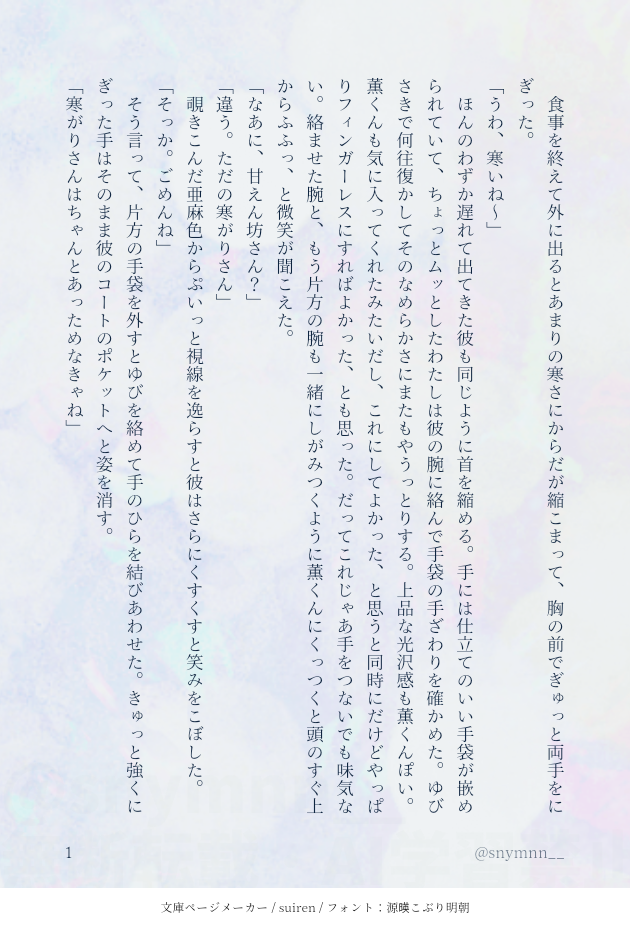 snymnn__☆quiet followDONEkorクリスマスイヴデートの終わり際5P〜kor視点 #enstプラス enstPlus show all(+7 images) Tap to full screen (size:630x928).Repost is prohibited Let's send reactions! freqpopularsnackothersPayment processing Replies from the creator Follow creator you care about!☆quiet follow snymnn__DONEkorのことが好きすぎる彼女のはなし② 7 snymnn__DONEkorのことが好きすぎる彼女のはなし 3 snymnn__DONE新生紅月お披露目ライブ前のちょっとしたはなし 4 snymnn__DONEkor/俺から言わせてねフォロワちゃんの恋バナより(ありがとうございました❣️) 5 snymnn__DONEibk夏の日 2 snymnn__PROGRESSknt② 3 related works ato_dream_DONEenst凪砂夢Twitterにて、#妄想力向上委員会 に参加致しました。素敵な企画をありがとうございます😊 649 ato_dream_DONEenst凪砂夢雨の日に彼女が傘を持って待っていたら車と自分の傘の選択肢を全て無視して彼女と一緒に相合い傘して帰ってくれる凪砂くん 1032 ato_dream_DONEenst 瀬名泉夢6月の#妄想力向上委員会 様のお題に参加した時のものです!素敵な企画をありがとうございます🥺 941 ato_dream_DONEenst凪砂夢完全に出遅れました。キスの日凪砂です💋 361 ato_dream_DONEenst凪砂夢ライブ後のお話です! 660 ato_dream_DONEenst凪砂夢テレビよりも自分に夢中になってほしい凪砂くん 543 ato_dream_DONEenst凪砂夢プロポーズの日、n年後の未来バージョンです💍 806 ato_dream_DONEenstジュン夢噛む理由について話すお話🐺⚠️凪砂くんにも彼女がいる前提です 930 ato_dream_MOURNINGenst凪砂夢以前流行っていた時期につらつらと書いたものです。このままお蔵入りも勿体ないと思ったので投稿します! 1306 recommended works ato_dream_DONEenst凪砂夢⚠️ハロウィンボイスネタバレあり公式のハロウィンボイス引用しています!(単なる妄想です) 444 snymnn__DONEadnsマロリクより「辛い現実から拐ってくれるadnsくん」リクありがとうございました! 4 snymnn__MAIKINGriここからはじまる物語りを書きたいんですねえ bnt_TRPGDOODLE ZS_jyuusyaMOURNING主従組きょやふま冬デートイラスト温めすぎて、クリスマス過ぎちゃったけど....;;こういうデートとかしててもいいよね~って思って!!マフラーの巻き方とか、それっぽいのではないか??!(個人的解釈) ichikawa santokiDOODLE只是想看...情趣內衣而已?(密码是男主播生日) 2 66wN6SPOILERさくなで&懐胎相棒箱詰めの面白かったとこ1番特色出てたと思い…… おぼれTRAINING媚薬風呂漬け📱拘束あり 3 白いごはんDOODLEトンチキ占い師弟。自陣探索者FA