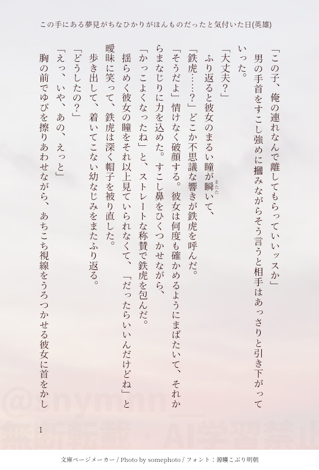 snymnn__☆quiet followDONEttr「この手にある夢見がちなひかりがほんものだったと気付いた日」(英雄) #enstプラス enstPlus show all(+2 images) Tap to full screen (size:630x928).Repost is prohibited Let's send reactions! freqpopularsnackothersPayment processing Replies from the creator Follow creator you care about!☆quiet follow snymnn__DONEkorのことが好きすぎる彼女のはなし② 7 snymnn__DONEkorのことが好きすぎる彼女のはなし 3 snymnn__DONE新生紅月お披露目ライブ前のちょっとしたはなし 4 snymnn__DONEkor/俺から言わせてねフォロワちゃんの恋バナより(ありがとうございました❣️) 5 snymnn__DONEibk夏の日 2 snymnn__PROGRESSknt② 3 related works ato_dream_DONEenst 瀬名泉夢6月の#妄想力向上委員会 様のお題に参加した時のものです!素敵な企画をありがとうございます🥺 941 ato_dream_DONEenst凪砂夢雨の日に彼女が傘を持って待っていたら車と自分の傘の選択肢を全て無視して彼女と一緒に相合い傘して帰ってくれる凪砂くん 1032 ato_dream_DONEenst凪砂夢ライブ後のお話です! 660 ato_dream_DONEenst凪砂夢プロポーズの日、n年後の未来バージョンです💍 806 ato_dream_DONEenst凪砂夢完全に出遅れました。キスの日凪砂です💋 361 ato_dream_DONEenst凪砂夢Twitterにて、#妄想力向上委員会 に参加致しました。素敵な企画をありがとうございます😊 649 ato_dream_DONEenstジュン夢噛む理由について話すお話🐺⚠️凪砂くんにも彼女がいる前提です 930 ato_dream_MOURNINGenst凪砂夢以前流行っていた時期につらつらと書いたものです。このままお蔵入りも勿体ないと思ったので投稿します! 1306 ato_dream_DONEenst凪砂夢テレビよりも自分に夢中になってほしい凪砂くん 543 recommended works しもふみMOURNINGキミだけ夢主の顔がある 2 みやたやDONEマリやのマリ漫画※マリィちゃんが変態なので、何でも許せる人向けです 6 snymnn__MOURNINGkorと中学の同級生未完成すぎて恥ずかしいけどこれはこれで思い出。加筆修正版を収録した本があります。どうぞよしなに。 10 snymnn__DONEadnsくんと同級生 2 ichigoDOODLE中国语、繁体注意🔑:18 ↑ yes or no? 2475 kofigyugi2ndDONEピンク色の振袖着てみた。どうかな?似合ってるかな?(ちょっと不安がっている) 8 viikaviDONECharacters from my omegaverse webtoon👉👈👀 “My precious diamond”Read here 🔗 m.tapas.io/series/My-Precious-…All links 🔗 viikavi.carrd.co/ viikaviDONESupport me and get a lot of goodies💖: www.patreon.com/viikaviAll links: viikavi.carrd.co/ sub_sinosinoDOODLE悪魔も擬☀️さん(神父擬態☀️さん)