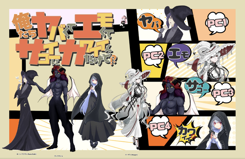 yunicha666☆こそフォロらくがきCoC「俺たちヤバくてエモくてサイコーにカワイイんだけど!?」KP:ゆにちゃHO1:Rune Hrafn/ふぶきHO2:Haagen/くろえHO3:Willerache/かいHO4:スージー/あいこ タップで全画面(原寸:2618x1704)無断転載禁止 リアクションをたくさん送って応援しよう! よく使う人気おやつその他支払処理中 作者からのリプライ 気になる人をどんどんフォローしよう!☆こそフォロ yunicha666らくがきCoC「俺たちヤバくてエモくてサイコーにカワイイんだけど!?」KP:ゆにちゃHO1:Rune Hrafn/ふぶきHO2:Haagen/くろえHO3:Willerache/かいHO4:スージー/あいこ yunicha666らくがきCoC「悪喰」KP:ゆにちゃHO1:Rune Hrafn/ふぶきHO2:Willerache/かいHO3:スージー/あいこHO4:Haagen/くろえ▼ END 愛喰 全員生還 yunicha666らくがきCoC「地獄の沙汰も餌次第」《2 話 異世界エレベーター》KP:ゆにちゃPC1:山鳩 幸大/かぷりこPC2:飯野 佳代/aya yunicha666らくがきCoC「ネオンに照らされ死んでみたい」KPC/KP:黒江 詩月/はるこPC/PL:白瀬 一澄/ゆにちゃ▼ END5 yunicha666らくがきCoC「地獄の沙汰も餌次第」《1 話 河童の手のミイラ 》KP:ゆにちゃPC1:山鳩 幸大/かぷりこPC2:飯野 佳代/aya yunicha666らくがきCoC「地獄の沙汰も餌次第」《3 話 おかむろ》PC1/KP:幸乃 純愛/ゆにちゃPC2/PL:御影 溟也/ふまてぃあ おすすめ作品 rainできた良い夫婦の日だと気がついて、慌てて書いたロナドラ。 5725 バラッドらくがき好きな人間発表ブラックが〜好きな人間を発表します〜【さ と く ん】好き好き大好き〜好き好き大好き〜 Michaかきかけ喝醉的赤葦編輯就會變成女人小短篇 慢慢完成它 7 sirome0_0できたポゼの中でも、元のお家に戻りたい子、戻りたくない子で意見の食い違いが出てきてもしんどい、好き…ってなる 693 mune_pipiらくがき多分文化祭終わり。 SamiYo_nijiできたつかよだ たまに捕食者の顔になる男 2 喜欢偷吃らくがき搬运 不是原画师 TT_Rex_Soloらくがき犬旬 R18 フォロワー400人おめでとう!! 2242 たかのアキ【イラスト】過去のを晒す2023年に描いたシオン
