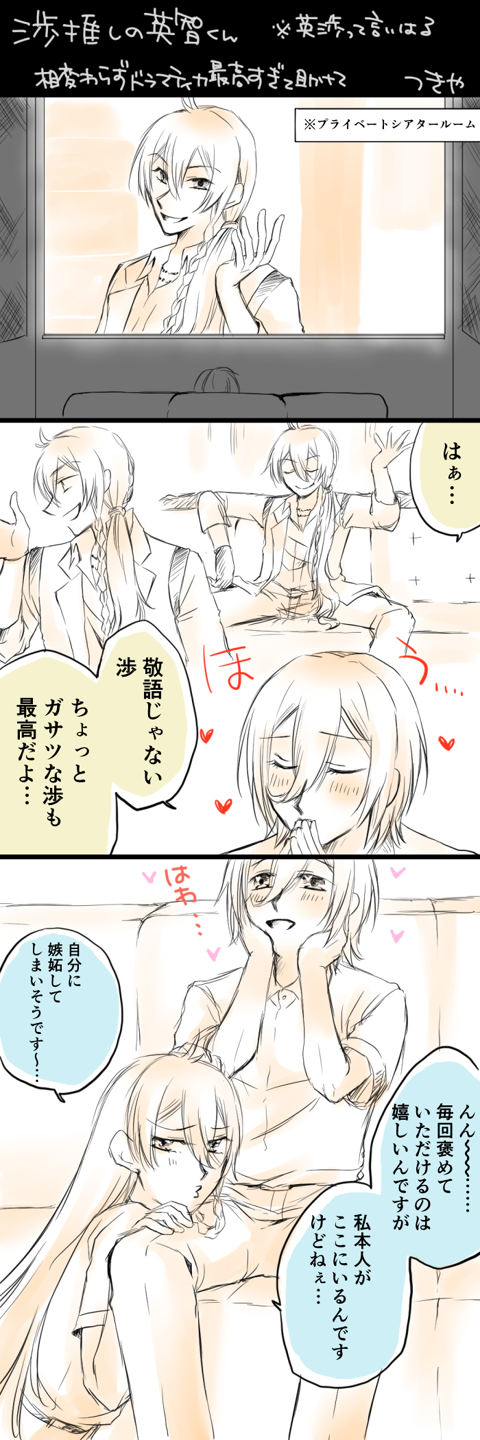 つきや☆quiet followSPOILERドラマティカディレイ配信エンドレスリピートしています。。はあ。。最高というわけでまた描いてしまったすいません。。きっと英智もドハマりしてると思うんだドラマティカ。。。 #英渉 english Tap to full screen (size:700x2100).Repost is prohibited Let's send reactions! freqpopularsnackothersPayment processing Replies from the creator Follow creator you care about!☆quiet follow つきやDONEしてはないけど前提っぽいtkbネタなのでワンクッションしてます閲覧はご注意を!ちょっと刺激が強い方がお好みだったりしたら可愛いなっていうお話です。続きっぽいオマケもあるんですができたら追加します。。気長にお待ちください~→9/1オマケ追加しました!ムラつくマレ様が描きたかったんだ。。くだらなくてすいません(笑) 2 つきやDOODLE【マレリリ】TLで見たえっちなバニー服をリリアちゃんにも着て欲しかったってだけの漫画です。えっちじゃないけどえっちな服着せてるので注意です~!マレ様あんまりコスチュームプレイとか興味なさそうですよね 2 つきやDONE【マレリリ】えっちじゃないですが触手注意です~!リリアちゃんに触手絡ませたかっただけなのに何故数ページにも渡ってマンガを描く事になったのか謎(笑)特に意味もオチもなく触手が完全に当て馬なので触手愛好家の方には申し訳ない(笑)くだらないわりに時間めちゃくちゃかかったけど満足です~ 4 つきやDOODLE弓弦誕生日おめでとう~。。ってことでちょっと前から描いてましたらのっけから公式と齟齬がでたので(笑)恥ずかしい~!!けどせっかく描いたし。。という貧乏根性でこっそりこちらに投げます~。。祝う気持ちはあったことを伝えたい(笑) つきやDONE【マレリリ】※えっちじゃないけど事後注意セベのマスシェフで言ってたマレ様がリリアちゃんの夜食食った話ずっと気になってたので描けて良かったですあれだけもう食べたくないって言ってたのに食す(しかも夜)機会ってこれしかなくないですか??? つきやDOODLE【英渉 ※えっちじゃないけど裸注意】英智元々体温低そうだけど冬末端めっちゃ冷えてそうだなって思った落書きです related works r1xjwC7kZC3N2kFDOODLE흐세터에올렷던것들 5 ヒワタリDONEサマーバカンス ヒワタリPAST つきやDOODLE弓弦誕なのに英渉になってしまって申し訳なさが凄いのでこっちに投げました…誕生日のトークネタです最初描いてた弓桃は間に合わなかったうえにちょっとあれだったのでお蔵入りしちゃいましたが祝う気持ちはあります誕生日おめでとう弓弦…!! つきやDOODLE【英渉 ※えっちじゃないけど裸注意】英智元々体温低そうだけど冬末端めっちゃ冷えてそうだなって思った落書きです ZuttoSobade_DOODLE英渉 ぬるいけどやってる kien_ES_KKDONE英渉webオンリー「皇帝と道化に花束を2」で展示させていただいた漫画です。ありがとうございました! 8 ヒワタリDOODLE去年の夏 MOTSU(裏)DOODLE酔っ払うとゴッドハンドで絡みまくるさくまれいのおはなし recommended works ましゅ*DOODLEせっかくなので、fineまとめ。 4 あべかいこ/阿武シシンDONEアニメ放送開始まであと1日!fine y_ond_108DOODLE さか茶漬けDOODLEひめみやとうりさまだぞ〜!☆ つきやSPOILER※ESMGネタバレありESMGめちゃくちゃ楽しかったな!アンコールTシャツ気になって他キャラ全く記憶にないよ…閣下は多分出す派だった…はず…fineは多分これだったと思うの。早く円盤にして欲しいぞ!! nkksDOODLEイチャイチャ つきやDOODLE【英渉 ※えっちじゃないけど裸注意】英智元々体温低そうだけど冬末端めっちゃ冷えてそうだなって思った落書きです 2mittsu881DOODLE8/14 Enstar ログ #1.【随時追加】・fine アトランティス・渉 自分の誕用 2 やぎのすけPASTcreek