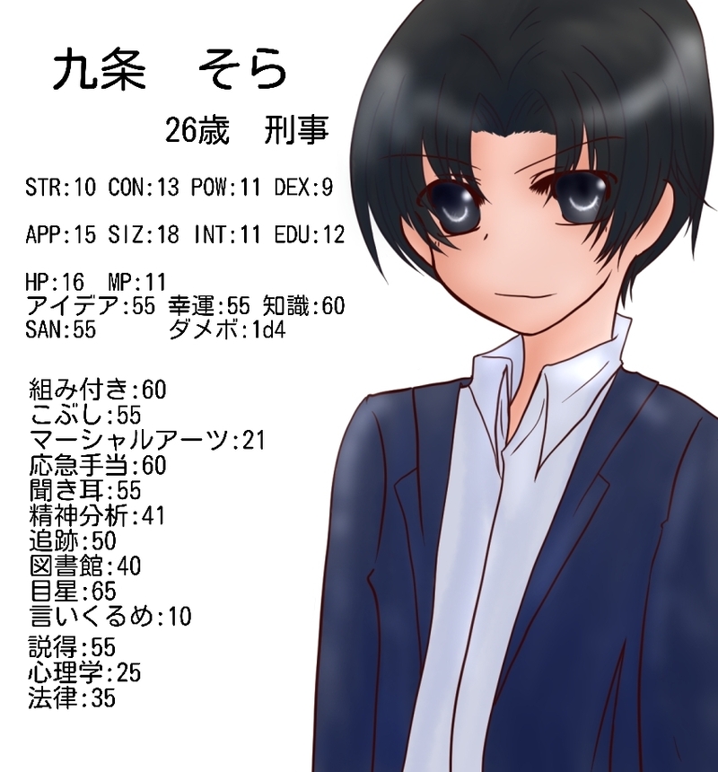 あいる☆quiet followMEMO九条 そら(九条3兄弟の次男)現在SAN51踏破済シナリオ。「ゆらぎの文末」10分クトゥルフシリーズ「電話ボックス」「コスモスの蕾」「一瞬で終わるシナリオ」 ##探索者 ##COC Tap to full screen (size:850x914).Repost is prohibited Let's send reactions! freqpopularsnackothersPayment processing Replies from the creator Follow creator you care about!☆quiet follow あいるDONE狐無常の動画企画に提出した絵 あいるDOODLECOCやるよ~!の時間に間に合わなくて、途中提出になってしまったりくくん立絵と二人の感じを説明しようとして5分で描いた九条兄弟と、開始10分前に突然描こうとした某シナリオのNPCに使おうとした絵(間に合わなかった)1枚目はそのうち完成させたい 3 あいるMOURNINGハロウィンに遅刻して上げそびれてた無常 あいるMOURNING謝范。横顔練習の予定だった。キラキラし過ぎてしまったなぁと思っている内に上げそびれてた\(^q^)/ あいるMEMO九条 りく(九条3兄弟の長男)現在SAN86踏破済シナリオ。「夜凪さんオリジナル・タイトル未定」 あいるMEMO九条 そら(九条3兄弟の次男)現在SAN51踏破済シナリオ。「ゆらぎの文末」10分クトゥルフシリーズ「電話ボックス」「コスモスの蕾」「一瞬で終わるシナリオ」 recommended works 不定形の多面体DONEうちのクトゥルフ探索者のお誕生日絵その2。相変わらずデフォルメの絵柄がばらばらです。 あさとまDOODLEリプ来た番号の表情を描くやーつ(ミスがあったのであげなおしですすみません) クオリアPROGRESS最近第五人格にはまりました。ヘレナちゃんかわいいです。ツイッターも始めたのでよかったらフォロしてくださいヾ(:3ノシヾ)ノシ@trois611 なかわたDOODLE戦犯マスターなかわた(ゆるい実録) シロサキDOODLEメイド児がいるならメイド兵がいたっていいじゃんか…… LasagnaDOODLEメインサバイバー・ヘレナちゃん suzumoto_fDOODLE にょこりDOODLE カザミヤDOODLE
