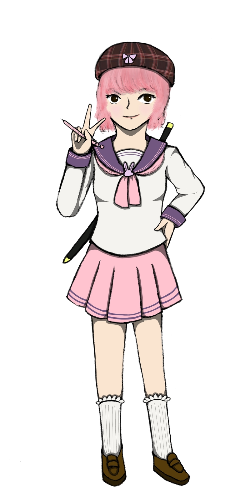 ももちゃんは「魂っぽさもあるけどちゃんとももちゃん」な絵にしたかった。あと学生服なのは分かってるけど刀は背負ってて欲しかった!!(わがまま)ので刀背負ってます。
