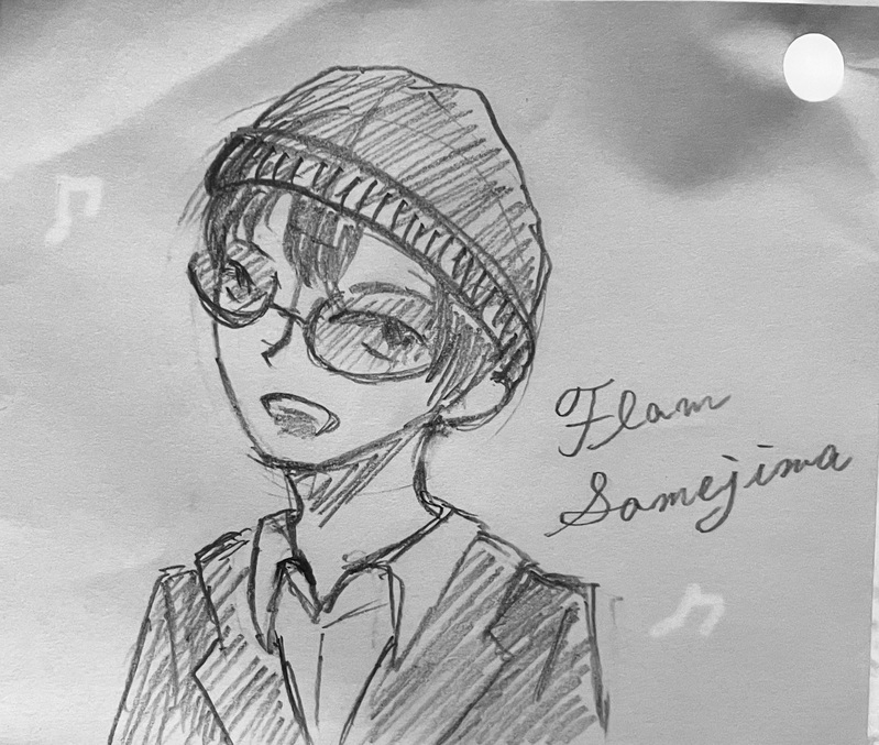 久々起床が嬉しすぎてflmくんを描きたかったけど描く時間がなくて仕事の合間に落書きした絵。