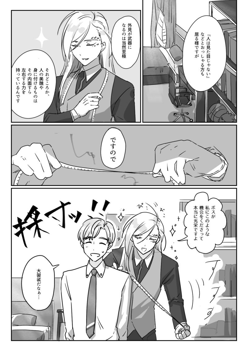 うーだらり☆quiet followSPOILERRofH展示作品でした。ぶかぶかのコート本編後、ルークとチェズレイの会話から始まるヒーローのマントについてのお話。 #エドワード・ウィリアムズ edwardWilliams show all(+9 images) Tap to full screen (size:1240x1754).Repost is prohibited Let's send reactions! freqpopularsnackothersPayment processing Replies from the creator Follow creator you care about!☆quiet follow うーだらりDOODLEアロルク。2023.4.14.誕生日動画のその後を妄想した漫画です。M1のモーテルでまだアーロンはルークにクールな国家警察を夢見てる感じがあってカワイイ。フォロワの誕生日に送ったものでした。 7 うーだらりDONE君とじゃなければ展示作品完成しました!!注意書きは私の言い訳なため読み飛ばしてもいいですが幻覚度数が高いことだけ覚えて帰ってください。パスはずしました。 18 うーだらりDONEEofPのその後のBOND諸君漫画。ルクはアーロンが何も言わんと去ってったのにも思う所あって、今回の出来事の締めも暗くならない様にするし、自分の最期にも辛くなんないように誕生日のあの無茶苦茶な発言しててくれたりしねえかな〜〜!!!!と思って描いたんだけど主題が消えた。 3 うーだらりDOODLE触手に襲われてるルーク うーだらりDOODLE落書き筋肉練習 うーだらりDONERofH2展示作品です。昔々の「苦手な食べ物」のお話。 7 related works コユキマルDONE【BMB】ウィリアムズきょうだい!?(第一話)ルーク15歳時に、エドワードがチェズレイとシキを養子にしたif設定の話です。あとがき後に私的エドワードの好きなところ語りのページも入れてみました。 8 コユキマルDONEエド+ジェイスンでBUDDY GO!エドワードとジェイスンでバディを組む話が見たくて描きました。ジェイスンさんとウィリアムズ親子の距離感が好きです。本編のネタバレはないです。※台詞は←方向に読んでください※ 11 kouSPOILERエドワードに引き取られたルークが、はじめて迎えるクリスマスの話ネタバレあります 9 kouSPOILER正義に殉じた男たちの話エドワード+ジェイスン普段アロルクを書いている人間のため若干アロルク要素があるかもしれません過去捏造しています 42 うーだらりSPOILERRofH展示作品でした。ぶかぶかのコート本編後、ルークとチェズレイの会話から始まるヒーローのマントについてのお話。 10 コユキマルDONE【BMB】親子のクリスマスパーティー with ジェイスンエドワード・ウィリアムズ中心Webオンリーイベント「Reminiscence of the HERO」のWEBアンソロ投稿用イラストです。イベントURL : http://webonly.main.jp/r_of_h/ エド 「似合ってるよ ルーク」ルーク「えへへ」エド 「ジェイスンのもあるぞ」ジェイ「・・・!?(絶句)」(ジェイスンは極上アーモンドミルクに釣られて来ました) コユキマルDONE[BMB]父さんのピアノウィリアムズ親子とピアノの話です。※あとがきにエドプロフ(ニンドリ情報)のバレがあります※ 7 うーだらりSPOILERM7の例の動画についての妄想漫画。(CP要素はないですがウィリアムズ親子とイアシキが好きな工場で生産されています)アナザーエピバレあり 7 odgrDONE嵐の夜のウィリアムズ親子。雷の音が怖いルークと歌の苦手なエドワードの話。バレはないですがワンクッション 2591 recommended works kimadosukoiSPOILER子アーロン×ルークの遅刻猫の日なんと続くのじゃ※子アロ容姿バレ 2 くじ太郎DOODLEはずれまんじゅうヤバイとおもう のり/はるTRAININGルク練習推しだし描きやすいと思ってたけど難しい くじ太郎DOODLE落書きまんが(一部ネタバレ含みます) 5 おいもPROGRESSルーク くじ太郎DONEモクマとチェズレイのじゃれあい 8 nugarisPROGRESS終わる気がしないよお😂 johnDOODLEA18までクリア 18日たのしみ kouSPOILERアロルク匿名小説企画に投稿していた小説ですシリアスですが最後はハッピーエンドです 33