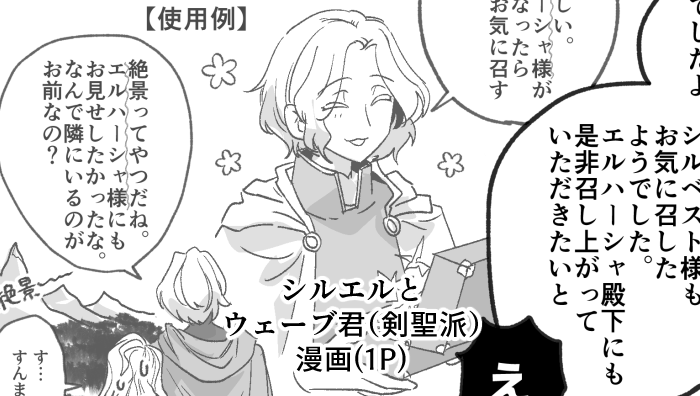 Soror☆quiet followDONEシルエルと剣聖派ウェーブ君の漫画(1p)です。26-24くらい?弊ウェーブ君はシルベストの元従騎士ということになっており剣聖に詳しいです。今後シルエルに巻き込まれていただく予定 ##シルエル show all(+1 images) Tap to full screen (size:700x396).Repost is prohibited Let's send reactions! freqpopularsnackothersPayment processing Replies from the creator Follow creator you care about!☆quiet follow SororDOODLEシルエルのおかお練習(2025.8.22) 2 SororDOODLEちっちゃいシルエルがじゃれじゃれする漫画2p(15-13)。大好きな2歳上のお兄さんに甘えまくる殿下ちゃんが描きたかった……シルくんは、殿下が最近すっっっごく甘えてくれて毎日超ハッピ~~~!!!!!と思っています。シルくん清らか説採用です。 3 SororDONE仲良くなり始めの幼少期シルエル(11-9)。シルくんは照れると黙るタイプ(※公式)。この「いいんだ…」をいっぱい積み重ねて、「シルベストはほんとに私のこと好きだなぁ」と腹落ちしていってほしい 2 SororDONEシルエル漫画1p(11-9)。ちょっと仲良くなってきた頃、殿下に叱られるシルくんです。大人のシルくんはこういうこと絶対言わないけど、子シルの頃は殿下がびっくりする(構ってもらえる)ってわかってて気を引こうとこういうことを言うので、殿下にメッされてほしかった(なお叱られて嬉しい)(無敵…) 2 SororDONEちっちゃいシルエルと王妃様漫画(2p)。シルくんというお友達の存在にホッとする王妃様(大人に祝福されてくれシルエル…)とシルくんの激重感情。子シルはピンと来てない言葉がカタカナになったらかわいいなとおもってます! 3 SororDONE王妃様と小さい殿下漫画(2p)。懐妊が分かってすぐなので殿下5~6歳。罪悪感で雁字搦めになってる人間が性癖なので王妃様がめっちゃ刺さるんだなと思いました(※勝手に刺さりに行ってる可能性があります)(2025.7.21) 3