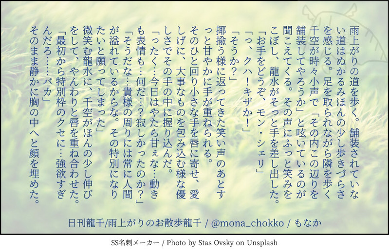 もなか☆quiet followDONE3月16日〜3/22 show all(+9 images) Tap to full screen (size:910x590).Repost is prohibited Let's send reactions! freqpopularsnackothersPayment processing Replies from the creator Follow creator you care about!☆quiet follow もなかDONE遊び心ですよ!ok?これ、紛らわシリーズと名付けてやろうかしら。🐉🚀 もなかDONEこちらも出来心のやつ(過去のやつです)🐉🚀です良いですか? もなかDONE遊び心です。OK?y or n もなかPROGRESSお人好し領主30〜45 16 もなかDONE猫2 7 もなかDONEキスミーで上げた🐈と🐉🚀〜ちょっとだけセンシティブなので…大人だけ見てね!あなたは大人ですか? 7 recommended works ɴᴇɴᴇDONEホムラのお誕生日に描いたやつ有給取って3/6当日に間に合わせた思い出みんなにお祝いしてもらってよかったね…… 2 kunikitatatataDOODLEにりつ3+ありがとうございました!とある夏の特異点在住のモブ山モブ子目線でお送りするエドぐだ♂です。「海の家にいるらしいイケメン店員を求めて」 3239 Katto.DONEAlt version かみおDONE庭師げんみ✖再掲のまとめ。誤字有。目を閉じて、朝焼けに眩しい幸せな世界で笑っている 22 __shrimp210DOODLE【記念写真】👓🍑 6 かさのゴミ箱MOURNINGボスキが主様の後を追う話(めちゃくちゃ自分用 984 uzwabiDOODLE正偽のイデアわさびのり卓1陣 HO天才 天ヶ瀬清志くんしゃくちゃんにお渡しできたのでこちらにも供養。私を狂わせた男の1人です(?)※ネタバレはありません mahatatatata_29MEMO▍𝐂𝐚𝐥𝐥 𝐨𝐟 𝐂𝐭𝐡𝐮𝐥𝐡𝐮 «もし、明日がくるなら»𝗣𝗖/𝗣𝗟:夏目 虹/梨木カルテ 早守 愛都/まはた➤両生還 シナリオクリア2024.12.25 yam3319DOODLE 16