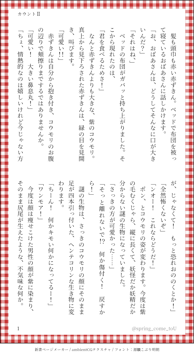 オカシなどらひな童話集☆quiet followINFO🍬 ̄ ̄ ̄ ̄ ̄ ̄ ̄ ̄ ̄ ̄🍪 どらひな童話開催まで あと2日!✨🍰__________🍭本日はふゆる様(@spring_come_toU)の作品をご紹介します! #どらひな童話カウントダウン #どらひな童話 show all(+3 images) Tap to full screen (size:618x1132).Repost is prohibited Let's send reactions! freqpopularsnackothersPayment processing Replies from the creator Follow creator you care about!☆quiet follow オカシなどらひな童話集INFO「オカシなどら×ひな童話集」の絵チャットです。皆さん書き込みありがとうございました!passはイベント略称を6文字で入れて下さい 2 オカシなどらひな童話集INFO🍬 ̄ ̄ ̄ ̄ ̄ ̄ ̄ ̄ ̄ ̄🍪 どらひな童話開催まで あと1日!✨🍰__________🍭本日はでがらし様(@degarashi8)の作品をご紹介します! 4 オカシなどらひな童話集INFO🍬 ̄ ̄ ̄ ̄ ̄ ̄ ̄ ̄ ̄ ̄🍪 どらひな童話開催まで あと2日!✨🍰__________🍭本日はふゆる様(@spring_come_toU)の作品をご紹介します! 4 オカシなどらひな童話集INFO🍬 ̄ ̄ ̄ ̄ ̄ ̄ ̄ ̄ ̄ ̄🍪 どらひな童話開催まで あと3日!✨🍰__________🍭本日はマッコウクジラ様(@Illciumanisatum)の作品をご紹介します! 3 オカシなどらひな童話集INFO🍬 ̄ ̄ ̄ ̄ ̄ ̄ ̄ ̄ ̄ ̄🍪 どらひな童話開催まで あと4日!✨🍰__________🍭本日はクロトトリ様(@kurototori26)の作品をご紹介します! オカシなどらひな童話集INFO🍬 ̄ ̄ ̄ ̄ ̄ ̄ ̄ ̄ ̄ ̄🍪 どらひな童話開催まで あと5日!✨🍰__________🍭本日は戌井犬様(@Saketa_Inoguchi)の作品をご紹介します! related works オカシなどらひな童話集INFO🍬 ̄ ̄ ̄ ̄ ̄ ̄ ̄ ̄ ̄ ̄🍪 どらひな童話開催まで あと3日!✨🍰__________🍭本日はマッコウクジラ様(@Illciumanisatum)の作品をご紹介します! 3 オカシなどらひな童話集INFO🍬 ̄ ̄ ̄ ̄ ̄ ̄ ̄ ̄ ̄ ̄🍪 どらひな童話開催まで あと4日!✨🍰__________🍭本日はクロトトリ様(@kurototori26)の作品をご紹介します! akekoDONE【人魚姫パロ・展示①(再掲)】海の魔女ドラルクがヒナイチ姫に声をかけた後のお話。ほぼ姫の兄がメイン(ドラヒナとは?)PWはWebイベント開催初日の数字4桁 3 オカシなどらひな童話集INFO📢こちらは11/29(金)開催の 童話パロ ドラヒナwebオンリー 「オカシなどらひな童話集」の カウントダウン企画用 ポイピクアカウントになります!明日から7日間こちらで企画に参加して下さった方々の素敵な作品をご紹介させて頂きます!✨どうぞお楽しみにお待ちください!イベントバナー用イラスト 星化石(@hoshikaseki) オカシなどらひな童話集INFO🍬 ̄ ̄ ̄ ̄ ̄ ̄ ̄ ̄ ̄ ̄🍪 どらひな童話開催まで あと7日!✨🍰__________🍭本日はkw様(@kw42431393)の作品をご紹介します! 4 オカシなどらひな童話集INFO🍬 ̄ ̄ ̄ ̄ ̄ ̄ ̄ ̄ ̄ ̄🍪 どらひな童話開催まで あと1日!✨🍰__________🍭本日はでがらし様(@degarashi8)の作品をご紹介します! 4 オカシなどらひな童話集INFO🍬 ̄ ̄ ̄ ̄ ̄ ̄ ̄ ̄ ̄ ̄🍪 どらひな童話開催まで あと6日!✨🍰__________🍭本日はしゅら様(@6660_0)の作品をご紹介します! オカシなどらひな童話集INFO🍬 ̄ ̄ ̄ ̄ ̄ ̄ ̄ ̄ ̄ ̄🍪 どらひな童話開催まで あと2日!✨🍰__________🍭本日はふゆる様(@spring_come_toU)の作品をご紹介します! 4 オカシなどらひな童話集INFO🍬 ̄ ̄ ̄ ̄ ̄ ̄ ̄ ̄ ̄ ̄🍪 どらひな童話開催まで あと5日!✨🍰__________🍭本日は戌井犬様(@Saketa_Inoguchi)の作品をご紹介します! recommended works 胃痛ygmDOODLE槍弓さんと青槍さんと赤弓さんのまとめ 28 秋霖@原稿中DOODLE2024/11/29〜12/1開催のwebイベント【オカシなどら×ひな童話集】会場の絵チャで描いたやつ蛸ルク(の足)と人魚イチ君iPadでアクセスするとメニュー欄の表示ズレが激しくて、入場までにめちゃくちゃ手こずりましたでもペンじゃないと描けないので頑張った わんこSPOILER本編ストーリーネタバレあります。お気をつけください。 3 seunjmtDOODLEテキーラ一気飲みしばとうご Ocho天然温泉DOODLE【鰯と柊】ネタバレ無し幻覚の続き NyoroTakochanDONEであずる展示漫画。付き合ってない💀🐙アフター公開しております! 4 桜音みあ/Chroe*DONEオリキャラちゃんです目を先に描くアレで描いた子を元にして描いたつもりだけど肌の色とか結構大胆に変えました胸のあたりと手袋はこだわりポイントですね NyamiNyamiCoCDOODLE yuzuyuzutrpgDOODLE 2773
