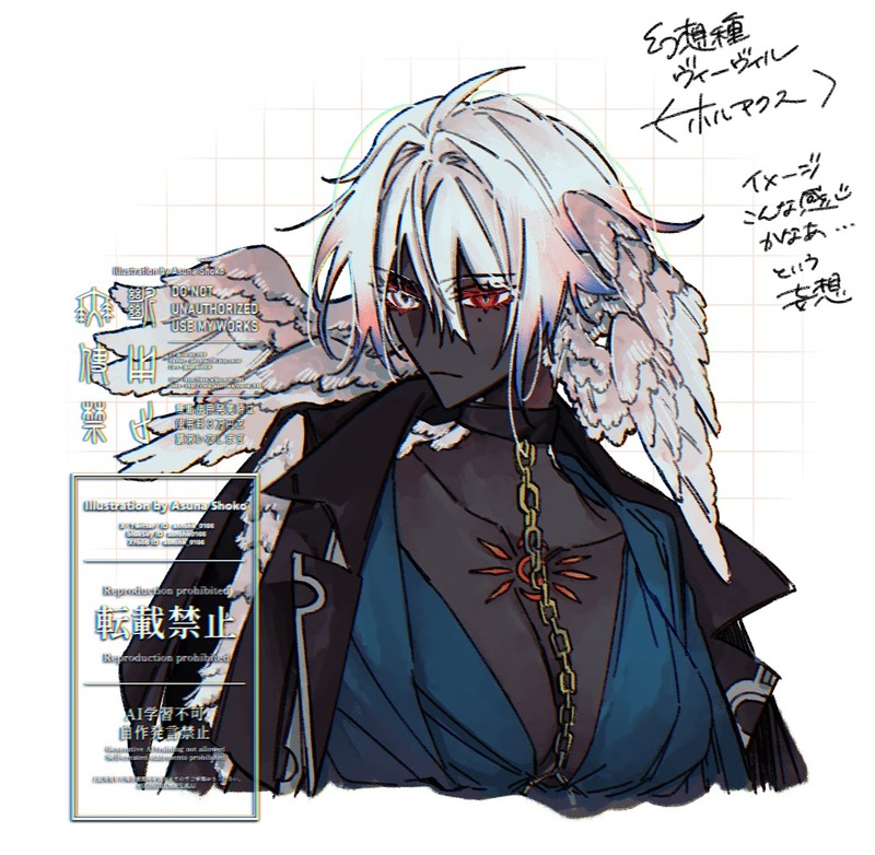アスナショウコ☆quiet followDONE幻想種ヴィーヴィル〈ホルアクス〉の絵 デザイン優勝したのではこれ めっちゃ良くないですか 黒い天使と白い死神……めちゃくちゃ勝手にクレマリー先生との対比というかクレマリー先生をめちゃくちゃ意識したデザインにしている(つもり)なんですがどうでしょう有識者の皆さん ##馬子軸_総合 show all(+1 images) Tap to full screen (size:1093x1069).Repost is prohibited Let's send reactions! freqpopularsnackothersPayment processing Replies from the creator Follow creator you care about!☆quiet follow アスナショウコDONEヴォーティーガーン/白銀真冬のらくがき ちょっとした設定なども書いてます 3 アスナショウコDOODLE久々に描いた桔梗さん(椿のお母ちゃん)と、勝手にここ数日間妄想させてもらってるシャルラッハロート軸の椿(ロリのすがた)のらくがき 2 アスナショウコDOODLE嘴馬先生(と舐めニキ)……… 3 アスナショウコDONE幻想種ヴィーヴィル〈ホルアクス〉の絵 デザイン優勝したのではこれ めっちゃ良くないですか 黒い天使と白い死神……めちゃくちゃ勝手にクレマリー先生との対比というかクレマリー先生をめちゃくちゃ意識したデザインにしている(つもり)なんですがどうでしょう有識者の皆さん 2 アスナショウコDONE次回文学フリマで出したい書き下ろし小説・新刊「鳴瑯館殺人事件(仮題)」の主人公男男バディの設定絵~~~~ 軸としてはレゾン・デートル寄りです探偵・大澄高久と助手・鴻菜々緒 二人合わせて007 アスナショウコDOODLE人類舐め蔵 原生神秘・原初の陸ミカエル=クロー・マクシミリアン