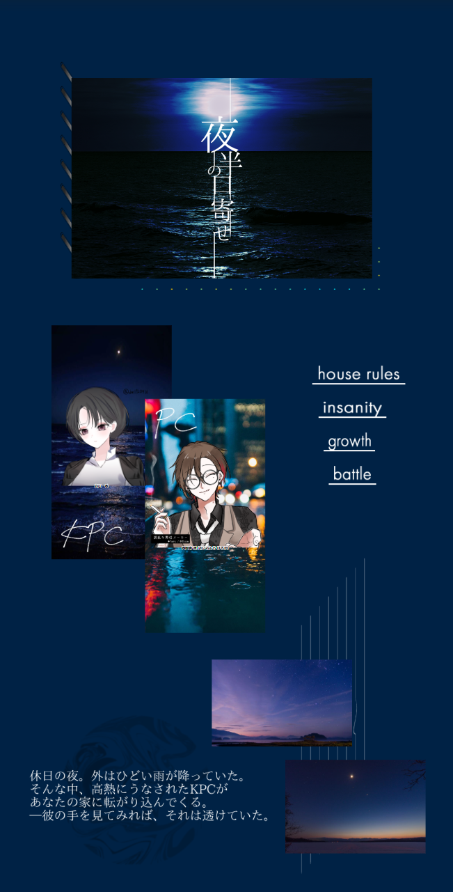 2525hinoesen☆quiet followINFO❚ ᴄᴏᴄ ᴛʀᴘɢ ✦ 夜半の口寄せ|𝐄𝐍𝐃 𝐀𝐊𝐏 / 𝐊𝐏𝐂 ひのえ𝐏𝐋 - 劉様 #卓報告 tabletopReport Tap to full screen (size:651x1281).Repost is prohibited Let's send reactions! freqpopularsnackothersPayment processing Replies from the creator Follow creator you care about!☆quiet follow 2525hinoesenINFO❚ ᴄᴏᴄ ᴛʀᴘɢ✦ あトの祀リ|𝐄𝐍𝐃 𝟏 不変𝟑 𝖠𝗅𝗂𝗏𝖾 / 𝟏 𝖫𝗈𝗌𝗍𝐊𝐏 / 𝐊𝐏𝐂 ひのえ𝐏𝐋 -▸ 𝐇𝐎𝟏 - れい様▸ 𝐇𝐎𝟐 - 劉様▸ 𝐇𝐎𝟑 - 校倉 琉稀様▸ 𝐇𝐎𝟒 - 飌雷 嗄綑様 2525hinoesenINFO❚ ᴍᴜʀᴅᴇʀ ᴍʏꜱᴛᴇʀʏ ɢᴀᴍᴇ ✿ 屍体に囁く|𝐄𝐍𝐃 ▸ - みら様▸ - 劉様▸ - ひのえ 2525hinoesenINFO❚ ᴄᴏᴄ ᴛʀᴘɢ ✿ 生前葬|𝐄𝐍𝐃𝐊𝐏 劉様▸ 𝐇𝐎𝟏 正義 - 光の卵様▸ 𝐇𝐎𝟐 倫理 - ひのえ 2525hinoesenINFO❚ ᴄᴏᴄ ᴛʀᴘɢ✦ 見つめる君は|𝐄𝐍𝐃𝐊𝐏 - ひのえ𝐏𝐋 - なつ様 2525hinoesenINFO❚ ᴄᴏᴄ ᴛʀᴘɢ✦ カタシロ|𝐄𝐍𝐃𝐊𝐏 - ひのえ𝐏𝐋 - みら(本名)様 2525hinoesenINFO❚ ᴄᴏᴄ ᴛʀᴘɢ ✿ 𝐏𝐚𝐫𝐚𝐧𝐨𝐫𝐦𝐚𝐥 𝐂𝐫𝐢𝐦𝐞𝐄𝐏.𝟑『白夜の光は続かない』|𝐄𝐍𝐃𝐊𝐏 劉様▸ 𝐇𝐎𝟏 - 𝐑𝐢𝐚.様▸ 𝐇𝐎𝟐 - 笹薮様▸ 𝐇𝐎𝟑 - ひのえ▸ 𝐇𝐎𝟒 - ニル様▸ 𝐇𝐎𝟓 - 校倉 琉稀様▸ 𝐇𝐎𝟔 - 飌雷 嗄綑様 related works Zun_KomameINFO『REGlCiDE』作/犬点書店 様KP:BisqueさんPL:三井圭さん(セレスティン・ムーガイ) ベジタリあんどうさん(ルイス・スミス) こまめ(ガラハッド・ファーノン) 希崎ひねもさん(パーシヴァル・ファーノン)生還にて終了です!よかった~~~!!!次はオブブブ!!!!💪💪⚠️ネタバレ落書きアリ⚠️PW:ok 8 hikura3145SPOILERCoC『REGICiDE』制作:犬点書店 様KP: ヤマシタHO1:Arthur Edward Wellesley /なつこHO2: Lucian Azure Beckett/るもちゃんHO3: Albert Tim Illustrious/まげる先輩HO4: Lucas Illustrious/ろびん先輩END-A 全生還プリンセスハウスよ 永劫なれ hikura3145SPOILERCoC『OBLIVION』制作:犬点書店 様KP: ヤマシタHO1:Arthur Edward Wellesley /なつこHO2: Lucian Azure Beckett/るもちゃんHO3: Albert Tim Illustrious/まげる先輩HO4: Lucas Illustrious/ろびん先輩END-Ω 全生還プリンセスカレッジよ 無窮なれ ZUTTOGAMESDOODLECoC「Gin・Craze」 text_7DOODLE2025.07.09「黒いガレー船」PL まいまいさん、えびさん、ももしゃさん、獅子飼いさん温水 海斗、温水海里、紺野 秋永、葉山 湊 2525hinoesenINFO❚ ᴄᴏᴄ ᴛʀᴘɢ✦ 星が落ちた日|𝐄𝐍𝐃-𝟏𝐊𝐏 - ひのえ𝐏𝐋▸ 𝐇𝐎𝟏 - 飌雷 嗄綑様▸ 𝐇𝐎𝟐 - 日向様 hikura3145SPOILERCoC『sleep-walker』制作:蛙屋 様KPレスPC:Theodore・UttersonエンドB→D(処理ミスを発見したので)出目がカス! 睡眠の質もカス! hikura3145SPOILERCoC『ここ掘れ!メルゴー!穴掘りカレッジ!』制作:犬点書店 様KP: ヤマシタHO1:Arthur Edward Wellesley /なつこHO2: Lucian Azure Beckett/るもちゃんHO3: Albert Tim Illustrious/まげる先輩HO4: Lucas Illustrious/ろびん先輩プリンセスハウスよ ムキムキなれ かれいINFOCoc【ゆれるフリルにくちづけて】黒柄 エチル様・作PC/PL:カエデ/ちゃろKPC/KP:赤城 駿河/かれいEND.B にてシナリオエンド 2