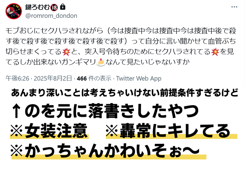 ろむむ☆quiet followDOODLE轟爆/プロヒ軸⚠️女装注意⚠️0802の日に乗っかったネタだけど、💥がモブおじにセクハラされてそれに対して🍰がブチぎれてるだけの落書き~描きたいところだけ描いたシリーズ~ ##轟爆 show all(+2 images) Tap to full screen (size:895x657).Repost is prohibited ろむむDOODLE轟爆/プ□ヒ軸授乳よしよし手コキプレイ(?) ろむむDOODLE轟爆/ハロパロ⚠️大人吸血鬼がチビ人狼に手を出している描写有りなので注意⚠️上記の注意確認済 → yes 8 ろむむDOODLE2025.10.15更新Xに投稿した轟爆をまとめるログ②(新着↑) 7 ろむむDOODLE202.10.17更新Xに投稿した鍵( @romrom_dondon )落書きをまとめるログ②(新着↑) 7 ろむむDOODLE2025.10.17更新Xに投稿した腐以外のをまとめるログ②(新着↑) 5 ろむむDOODLE轟爆/プ□ヒ軸す~ぐ煽るんだから 3 recommended works Pessy_LujiDONE類寧々 | 神のまにまに(随神之侧)*中国語ご注意いただきます自分の妄想パロ、神明 x 際品ワンダショの神のまにまにマジ尊いで思ったから書きました。 5920 oyoyoyboybDOODLE🍆🦝💕💕 3 貓の愛DOODLE伽小 被ban掉n次的一张。。。 ほいほいPAST支部にあげてる恵誕(五伏)、懐かしくなったので… 4541 RinZun_TRPGMEMOCoC「純潔と鉄血」とても良かった…!!1日楽しかった!ありがとうございました!!☺️ omaewatomatokaDOODLEcoc「トゥルーライトの幸福劇」KP:白李さんPL:もこ片ロスにて終了。茉莉ちゃんはこの選択しかできないね…… sodanocchaDONE두루님께 맡긴 케리온 커미션이 왔습니다!크리스마스 서비스까지 주셨는데 너무너무너무 귀엽고 감동임...우리애들이 연애를 하고 사랑을 한다...🥺🥺💖💖💖💖 엄마아빠사커???????두루님의 둘을 붙이고 보는 타입 입니다! 3 えらのPAST🍜😌 RAPE_0205SPOILERレプ葬オリジナルシーン⚠️ネタバレ未通過と通過中❌ 6