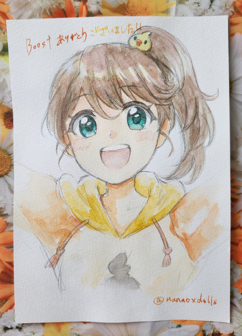 ななお☆quiet followDONE時間経ったしそろそろ良いかな…?Boostお礼で描かせて頂いたヒヨとシオリンです!Boostくださった方、本当にありがとうございました!!🙏🏻✨ #東京ドールズ tokyoDolls show all(+1 images) Tap to full screen (size:2385x3312).Repost is prohibited Let's send reactions! freqpopularsnackothersPayment processing Replies from the creator Follow creator you care about!☆quiet follow ななおPAST大昔の原稿が出て来たのでテキトーに載せてみます。プリリズADのみおあい本とDMFのユンみあ本の後書き。またかりみあに覚醒める前だったんですけどその兆しが見えますね。コピ本だったのであまり刷ってなくて手元に本無いんですよね〜。データならある筈だけどどこにやったかな… 6 ななおDONE昨年やりたくて描き始めたサクラ登録日&ドールズ8周年絵、やっと完成させました!サクラ中心にマゼンタ組詰め合わせシールにしたくてネップリも登録してみたんですけど、ちゃんと綺麗に出来るかな…よろしければご利用ください! 2 ななおDONEかりんお誕生日絵2025です!もっとサラッと描こうと思ってたのに気付いたら本気で描いちゃってて時間が…。でもお陰でプリティー関連で一番いいね貰えた絵になったので良かったです。ありがとうございます!しかしアイプリバースのひみつタイム!!ディアマイキャラのまだ知らない秘密色々知る事が出来て本当大感謝でした!!あやみがオムライス好きとかみあがいちご牛乳好きだなんて知らなかった!! ななおDOODLE先日の桜の誕生日と、雪ちゃんの誕生日と、まだ載せてなかったドールズの落描き達です。まだ描きたいの色々あるなぁ… 4 ななおDONE落描きレベルですがシンちゅわお誕生日おめでとう絵です!プリズムラッシュでハイタッチしてくれるシンちゅわ!X掲載時よりちょこちょこ直したしかし新作まさかの3強にCallings…!!この情報だけだとぃ"や"った"ぁ"ぁ"〜〜〜な感じですが、監督“地獄を見せます”て……どゆこと……こわ心して備えます ななおDOODLEセプトリVライブのHappyHappyBirthday!最高だったね…という落描きです。カケル誕生日祝いも兼ねてます(なのに落描き)。本当幸せ空間過ぎましたよね…Vライブ制作に関わった全ての方に感謝したい。語彙力なくて可愛いとか最高しか言えなくてすみません、でも本当可愛くて最高だったので皆に観てほしい。映画館でやるしかないのでは? related works ななおDOODLEイマーシブ演劇どつぼで共演された果鈴ちゃんとえりぴょんを私の2次元フィルターかけて絵にしました!推しの結婚式なんて楽しめるのか不安でいっぱいだったんですけど全然楽しめました!まぁ特にイチャ²シーンなかったし…エマと果織の方がイチャ²してたんじゃ??ありがとうございました!!二次会はお二人とお話出来て夢のような時間だったな✨ ななおDONEナナミ登録日絵!ツイにもあげましたがこっちは紙なしverもあげてみます。見えないとこだからあんまちゃんと描いてないですけどね。眼鏡もオフに出来る仕様にしとけば良かったなぁ〜。 2 ななおDOODLE偶にアナログで落描きしたくなりますよね…てかサ終まで時間なさすぎつら ななおDONEディオ、誕生日おめでとうでした!等身ディオ描いたの初めてでしたが描くの楽しかった!私の中でディオはロリなので、ちょっと幼く描き過ぎたかもですが…。 ななおCAN’T MAKE百均でタッチペン買ってポイピク再チャレンジしてみましたがダメでした。ちゃんとiPadで落描きしないとダメか…? ななおDOODLE最近の落描き。ヤマサクお忍びデートも描き始めBRヤマダみたいに軽めに描こうと思ってたんですけど、どんどんもう少し、もう少しと描き進めて迷走しました。まぁ3枚目のが圧倒的迷走度なんですけどね!夢に出てきた公式絵を再現しただけなんで、私も全く意味不明です。 3 ななおPROGRESS凄い攻め顔でゲームしてるヤマダうけるなって思いながら描いてます。 ななおDONEシオヒヨ!ツイより色々修正しました。 れもねDOODLE(2枚あるよ)今年、こういうロングのティアードスカートが流行っているらしいほんとかしらないけどこういう解釈もいいなと思いました 2 recommended works y_satoriDONE滑り込みハロウィン イヨ缶PROGRESS年賀状のラフ完成仕上げは元旦に hiioPAST2015年くらいのお絵描き🎨✍ 鴨角たおるDOODLE目の描き分けと鈴ちゃん 2 魚ぜんまいDOODLE植物大好き傭兵女の子にモテるタイプ うず海DOODLEサークル合宿で描いたやつ 有那 雨夏DOODLE下塗りまでなんとかたどり着いた…… フク吉PAST 3 リンドウDOODLE描きながら考えてることとか全部紙に書いてしまうタイプの人間なので見返すと絵の周りがめちゃめちゃうるさい 8