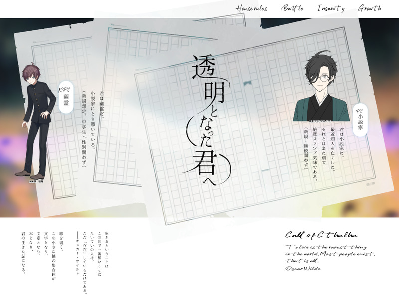 rasuja000☆こそフォロお知らせCoC6透明となった君へKP/KPC ゼロリス様/水無瀬 朝陽PL/PCラスジャ/飛黒 爻久々に起こしたPCで行ってきました〜幽霊と共に日々を過ごしました 楽しかったー タップで全画面(原寸:1058x787)無断転載禁止 リアクションをたくさん送って応援しよう! よく使う人気おやつその他支払処理中 作者からのリプライ 気になる人をどんどんフォローしよう!☆こそフォロ rasuja000お知らせCoC6透明となった君へKP/KPC ゼロリス様/水無瀬 朝陽PL/PCラスジャ/飛黒 爻久々に起こしたPCで行ってきました〜幽霊と共に日々を過ごしました 楽しかったー rasuja000お知らせこちらはグドモであばんどんさんが描いてくださった重病人の立ち絵とPicrewさん版 年いった小説家で綺麗に燃え尽きてロストだったなぁとしみじみ 2 rasuja000お知らせエモクロア彼方からの幻燈DL あばんどん様PL/PCパンダ丸様/市来 結斗ラスジャ/宝立 ブラック相方が自分がカタシロ回した時の継続PCで来てくださったりDLは自分がカタシロ回した方だったりで縁に囲まれた卓でした濃厚なディズムさんワールドで面白かったなぁ rasuja000お知らせCoC6Good morning AllKP パンダ丸様HO:PC/PL不老不死:心/あばんどん様重病人:笛吹譲/ラスジャEND Dでロスト! 納得の行くロストで燃え尽きました、楽しかった2026ロスト初めになったなぁ rasuja000お知らせCoC6ここで長く生きてKP ラスジャPL/PCゼロリス様/中間 香織傀逅からの継続PCで来てくださりました最後の一言が響く回だったな〜しっとりと良い回でした rasuja000お知らせCoC7大正グロテスキズムKP にょん様PL/PCラスジャ/PC1 精神科医:巳原 ハクパンダ丸様/PC2 小説家:上濱 隆盛END A 全生還異説・狂人日記の親KPと行けました〜無事生き残れて良かったKPのロールプレイも素敵で物語に浸れましたこの世界観、よいな〜〜〜 おすすめ作品 felsaeできたfox boy kv3622できたぬるいR18creekです🎶相互おなにーしてほしい18⤴︎︎?(y/n) 2 seaway_fateリハビリ最近絵あげてないのでまたリハビリらくがきジュナ。仕事が忙しすぎて最近てっぺん越えて帰る日々です。しくしく。スーツ大好きなので描く練習もしたいな…。推しのスーツ姿なんぼあってもええですからねぇ!! 魅魔五号机らくがきnh 2 spankmathsらくがきfemyu 3 茄奈実ネタバレ「続ハーメルンのバイオリン弾き」22巻及び完結についての感想を。特にクラフル(主に夢フル=姫フル)に主軸を置いての考察と感想をつらつらと吐き出しています。一個人の感想なのであしからず。 4466 いざわらくがき参考書見て練習したやつ🔑→18↑(y/n) 2 TT_Rex_Soloらくがき犬旬 R18 フォロワー400人おめでとう!! 2242 calmdestorm2できたロマサガ2Rイースター!!