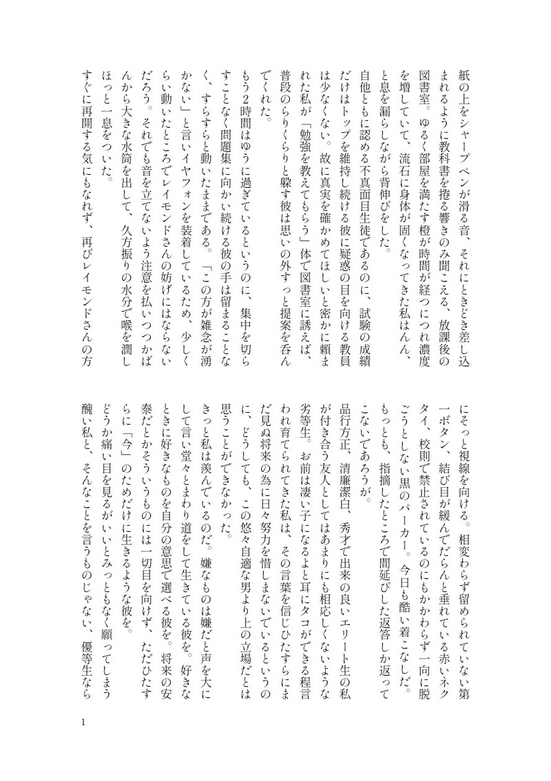 たわわ☆quiet followPAST学パロレイローSS。優等生なローレンさんが先生に頼まれて、不真面目レイモンドの見張りをするお話。 ##誰が為の回想録(メモワール) ##現パロの回想録(メモワール) show all(+1 images) Tap to full screen (size:888x1260).Repost is prohibited Let's send reactions! freqpopularsnackothersPayment processing Replies from the creator Follow creator you care about!☆quiet follow たわわDONEメモワール・逃げるは恥だが役に立つ本編のあいまに挟んでゆきたいような温度感の短編ですね。ここに割と🐈⬛🦅の空気感が詰まっているので、読んで損はさせません😁🎶 5 たわわDOODLEあの香りとともに花火がぱっと開く。プラネタリウムを聞きながら書きました、シエルさんのお話。日本初上陸〜⋯⋯?!浴衣も着て欲しかったね。 2 たわわDONE睡りに夏 其の二プライベートなローレンさんがひたすら可愛いよ〜!というだけで終わるお話。 3 たわわDONE睡りに夏 其の一お盆のお話。現パロローレンさんと【なにか】が交わるお話。 4 たわわDONE夜渚をゆく伊生くんと修学旅行、いきた〜い!旅館の和装、見た〜い!!連れていってください。女の子ってよく言われるのは、メイク落としたら幼くなるね〜、とかだと思うんだけど、伊生くんは逆にお顔立ちの男の子みが強くなって欲しいな。 7 たわわDONE夜は短し歌えよ偶像《アイドル》例に漏れずドルパロのレさんですよ〜!!ショート動画ぺぺぺってしてたら、割と韓国アイドルさんたちの衣装不備とかの動画が上がってきたりして、レイモンドさんならどう対応するんだろうな。と思って書きました。女性アイドルさんは溢れ落ちそうなものがあるから余計に、衣装の不備は本当に大変そう。 4 recommended works 2tama5722DOODLEにょたゆり最王スケベ絵 最原手だけ全然力入ってないのでされるがままです HYK_002DOODLE貞燭、つるくり の恐れあり 4 mido_hotcakeSPOILERはんはうNPCのファンアートです!⚠️ネタバレがあるよ mamamanmeDOODLEジクリ セッ●スしないと出られない部屋 2回目 RoRo(ロロ)DOODLEAvances de video! 3 kimi2_3chiareDOODLEちーちゃん関連 11 KoKokokofuDONE「はじまりの」ワンドロ企画 12/12『海』分卒業式の日とその半年後のお話 4 芙DOODLE滿18了嗎🫵(yes/no) 2 だだだDONEフレディとエリック人狼と大老とか、強欲と賢狼みたいなイメージギャルのマインドを持つフレディとそれに振り回される生真面目なエリック……みたいな……マロありがとうございました!