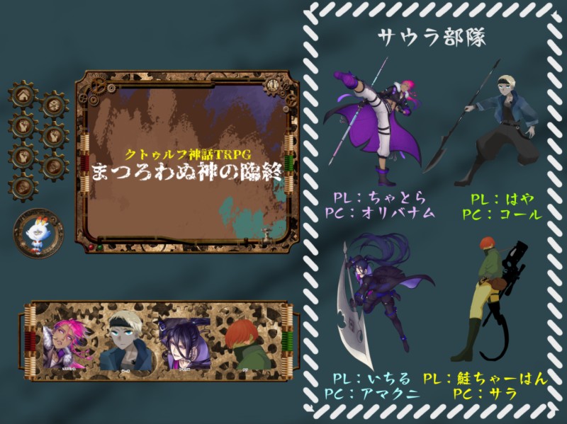 ちゃとら☆quiet followMOURNING・21/10/03、16『まつろわぬ神の臨終』作:USB様<<<<<<<<<<<<<<<<<<<<◆𝓚𝓟 しぐお◆𝓟𝓒/𝓟𝓛 オリバナム/ちゃとら コール/はや アマクニ/いちる サラ/鮭ちゃーはん (敬称略/立ち絵順)>>>>>>>>>>>>>>>>>>>> ##卓記録 Tap to full screen (size:1244x932).Repost is prohibited Let's send reactions! freqpopularsnackothersPayment processing Replies from the creator Follow creator you care about!☆quiet follow ちゃとらDOODLE【現行・未通過❌】HTC すっぽんぽんの砲手 R18ではないけどおしりが丸見えなので背後注意! 3 ちゃとらDONE━━━━ 𝐶𝘢𝑙𝘭 𝘰𝑓 𝐶𝘵ℎ𝘶𝑙𝘩𝑢 ━━━━ 『聖戦のラグナロク』 作:ライ様 立ち絵差分 5 ちゃとらDONE⚠️2枚目にネタバレ有(自陣○)⚠️━━━━ 𝐶𝘢𝑙𝘭 𝘰𝑓 𝐶𝘵ℎ𝘶𝑙𝘩𝑢 ━━━━ 『# 1DEA-イデア-』 作:ライ様 ------------------------------------ HO4:吊るされた男 Nᴀᴅɪʀ Nɪɢʜᴛsʜᴀᴅᴇ ナディール・ナイトシェード━━━━━━━━━━━━━━━━ 2 ちゃとらSPOILER⚠️ネタバレあり⚠️しきぼん様(@bon3_shiki)のSkebにて、Aconite(HO4)メインでイラストを描いていただきました!通過してからずっとリクエストしたいと思ってたから、本当に嬉しい~!! 2 ちゃとらDONE. 𝐶𝘢𝑙𝘭 𝘰𝑓 𝐶𝘵ℎ𝘶𝑙𝘩𝑢┊✧✧✧ REPONYM-レポニム- ✧✧✧┊✦ HO1:悪魔 ✦ 𝑴𝒂𝒍𝒗𝒂𝒄𝒆𝒂𝒆-マルヴェシア- 貴方は悪魔だ。 HO2と契約して力を取り戻したい。 5 ちゃとらDONE𓆛𓆜𓆝𓆞𓆟𓆛𓆜𓆝𓆞𓆟𓆛𓆜𓆝𓆞𓆟 CoC 『鰯と柊』作:○助様𓆛𓆜𓆝𓆞𓆟𓆛𓆜𓆝𓆞𓆟𓆛𓆜𓆝𓆞𓆟𓆛 HO鰯 𓆝𓆞𓆟 あなたは「拝掌教」の教祖だ。𓆛 PC 𓆝𓆞𓆟 七星 佐甚(ななつぼし さじん) recommended works きりゅーDOODLE小さい生き物と甘い物の組み合わせって好きです( ˇωˇ )シリーズ化できたらな、と。 ちんちくりんDOODLEよその子たち 3 しまざきDONE峰岸 雪 高校生 sakuraba_01DONE狂気山脈人間 ゴミ屑DOODLEロスト##探索者 よいちPROGRESSちきちきモンタージュ みるきんちょすDONE11/7 志鷹愛(したか いつみ)ハイフェッツをなぞる病 8 LiLeLu_PMLMEMO初めての探索者 せーちゃんって呼んでね! keburiDONEソプスク自班のミニ生首描いた!