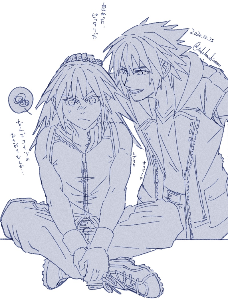 ネタ頂いて描きました陸のお下がりの服を貰うレプリカくん
