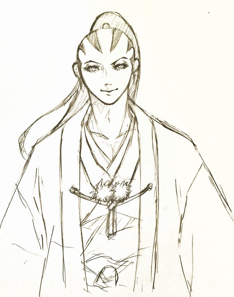 手塚『新選組』の土方歳三。首のとこの紐、何……?の疑問にお答えしたくぱぱっと描いたやつ。