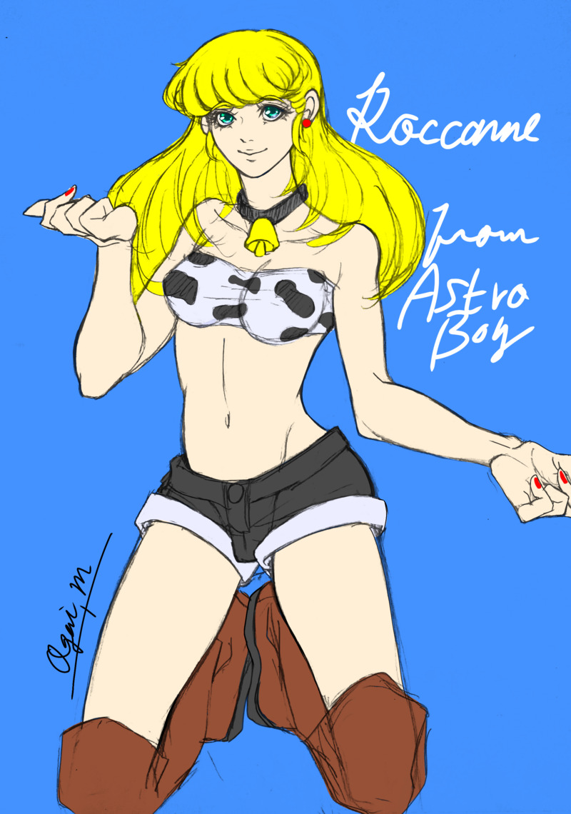カウボーイ風アトラスの流れで何故か急にASTROアニメのロクサーヌちゃん(03ASTRO BOYにおけるアトムお兄ちゃんの初恋の人)を描きたくなったので描きました。牛柄ビキニ、可愛いですよね……