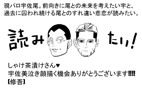 syugo315000☆quiet followDONEうぉおおお!すいません(土下座)宇佐美の泣き顔を描きたいそんな気持ちで描きましたあまりにも素敵な作品で続きが読みたいと無茶ぶりwoそしたら自分が描く流れになって穴があったら入りたい‼‼お目汚し失礼いたします!描かせていただける機会を頂けたしゃけ茶漬け様ありがとうございます(土下座) #宇佐尾 usao #推しの泣き顔 show all(+1 images) Tap to full screen (size:600x373).Repost is prohibited Let's send reactions! freqpopularsnackothersPayment processing Replies from the creator Follow creator you care about!☆quiet follow syugo315000DONEうぉおおお!すいません(土下座)宇佐美の泣き顔を描きたいそんな気持ちで描きましたあまりにも素敵な作品で続きが読みたいと無茶ぶりwoそしたら自分が描く流れになって穴があったら入りたい‼‼お目汚し失礼いたします!描かせていただける機会を頂けたしゃけ茶漬け様ありがとうございます(土下座) 2 syugo315000DOODLE現パロうさお、お気に入りの一枚 2 syugo315000DOODLEお絵描き詰め合わせ!性表現を匂わす作画がありますので観覧は成人指定でお願いします 7 syugo315000DOODLE2月に出した、はるやさんとのコラボ小説本の押絵乳首にピアスを開ける表現があります(成人指定)【成人ですか?YES/NO】 2 syugo315000DOODLE去年のクリスマスイラストに絵を追加しました 2 syugo315000DOODLE喧嘩するほど… 2 related works sakamiya210PROGRESSあまりに最近尾宇佐いいまくってるのでちゃんと宇佐尾原稿描いたことアピールしときます。 🍣くいねDONE現パロ宇佐尾① 4 🍣くいねDONE現パロ宇佐尾② 6 morishigkDONE尾夢、宇佐夢からの宇佐尾です2章の2です 1790 morishigkDONE尾夢、宇佐夢からの宇佐尾です2章の1です 2328 morishigkDONEひとさらい/2-3尾夢、宇佐夢からの宇佐尾です2章の3です 1912 az_2dsMAIKING243話あたり普通にお見舞いに来て顎の様子を見るくらいのことはしてそうだなってうさみんの距離感こんな感じっぽいなと · ·DOODLE宇佐尾裸なのでワンクッション目隠し差分の方が好き 3 morishigkDONEひとさらい/3尾夢、宇佐夢からの宇佐尾です3章、これでおしまいです 1052