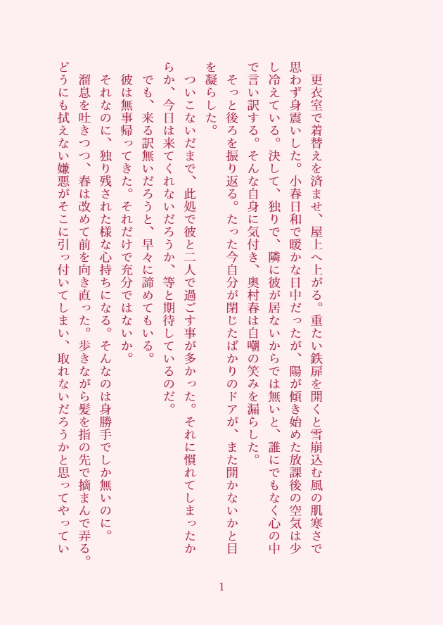 さぅ。☆quiet followPASTイベントで無配したP5の主春。 ##主春 show all(+11 images) Tap to full screen (size:630x888).Repost is prohibited さぅ。DOODLE2025書き初めホークリ。お酒を飲むフェンリルナイトとこのホークアイのクラスはどっちアンケートした結果。ブルームーンのカクテル言葉は「完全なる愛」と「叶わぬ恋」の2つがあるというトコから最後の一文を入れてる(言うの野暮だけど言っちゃう)なんかこの両方の言葉がホークリっぽいなと思っちゃった。 4 さぅ。DOODLE※ネタバレ含みます※p1-2:レナスの祭壇へ向かうヴァルヒナちゃん妄想p3-4:ただの叫びと言い訳とか 4 さぅ。DOODLEToM4周年用に…と思って書き始めた未来捏造。申し訳程度のケヴィシャル風味。 6 さぅ。DOODLEワンドロライまとめ1-3: 「逃げる」リースOP4-7:「女主人公(LoM)」「食卓」8-12:「ダッフル」「ラルク」「涙」 12 さぅ。DOODLEホークリ1-4:火炎の谷後のエルランド5:ワンドロライより 鳥/ハグ 5 さぅ。DOODLE晴←景っぽい何か 2