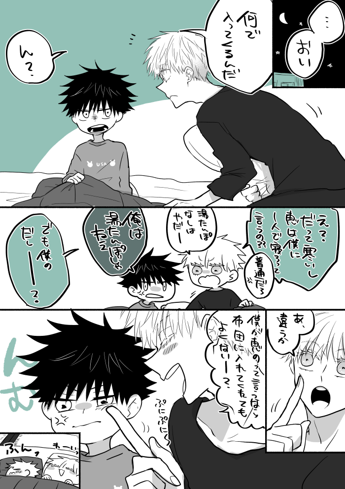 扉を開けると、そこには日常生活ではそうそう拝まない白金に光り輝く頭髪を靡かせた男がいた。睫毛の奥まで純白をたもつ男は、ビニール袋を伏黒に差し出すと我もの顔で靴を脱ぎ捨て家へと上がる。押しつけられた袋の中身を確認すれば、小分けにされた生蕎麦がいくつか入っていた。つゆやネギなども同封されたその袋は、どうやら茹でて皿に盛れば完成という代物のようだ。