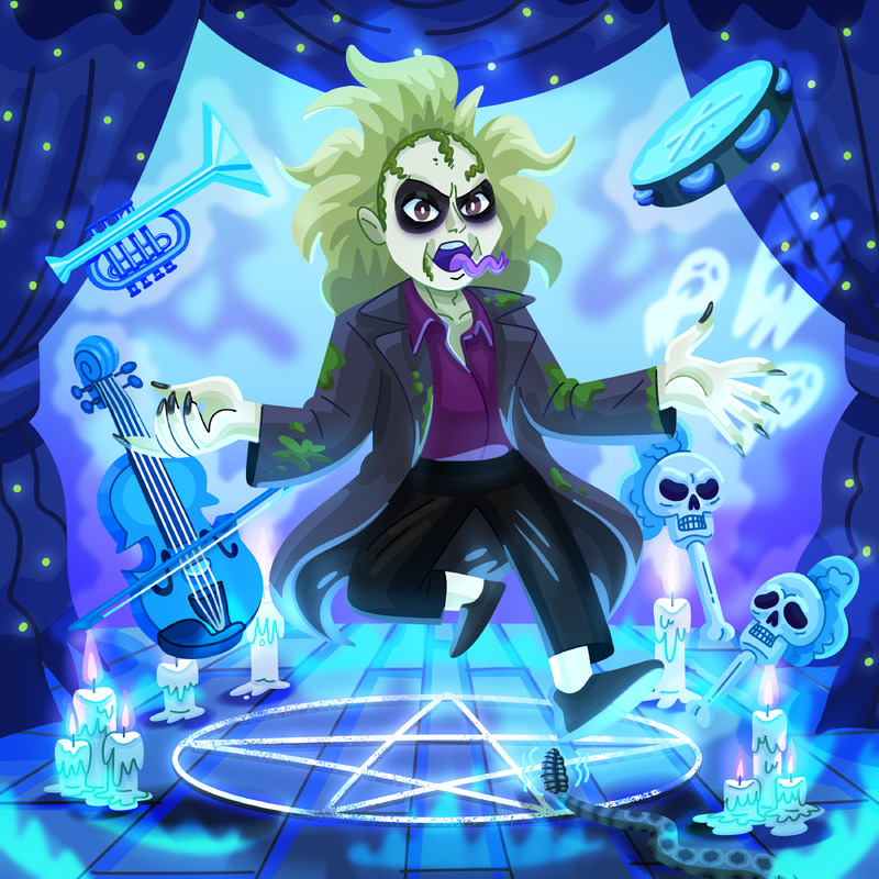 『ビートルジュース1』のメインテーマを聴いていると、打楽器のリズムや雰囲気が、マダム・レオタの幽霊を呼び出す儀式みたいだな〜と思っていて、