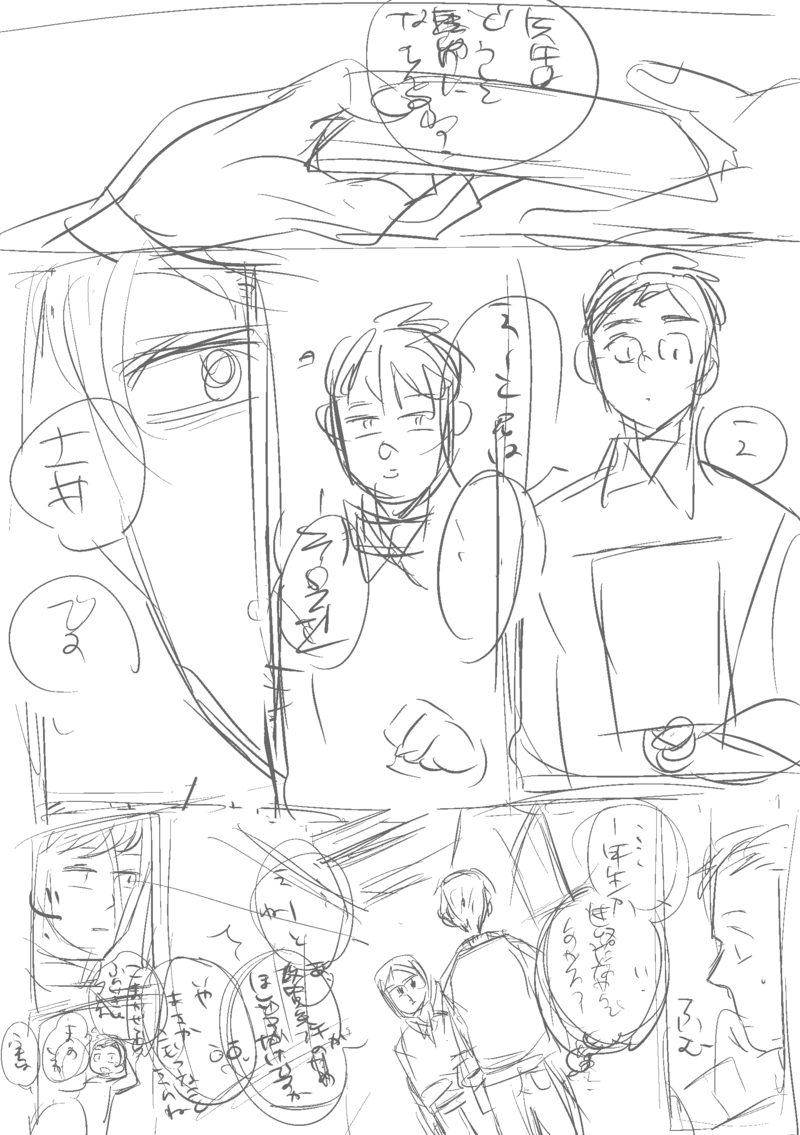 記憶あり16歳高校生ド×記憶なし22歳実習生尊くん。字も絵も殴り書きすぎるから解説すると、ドが尊くんに接触しに行きました→ドが尊に、なんで先生になりたいんですかと聞く→前世でよっぽど教師となにかあったのかもねなんちゃって⭐️てなる尊にドが辛抱たまらなくなるシーン(言い方
