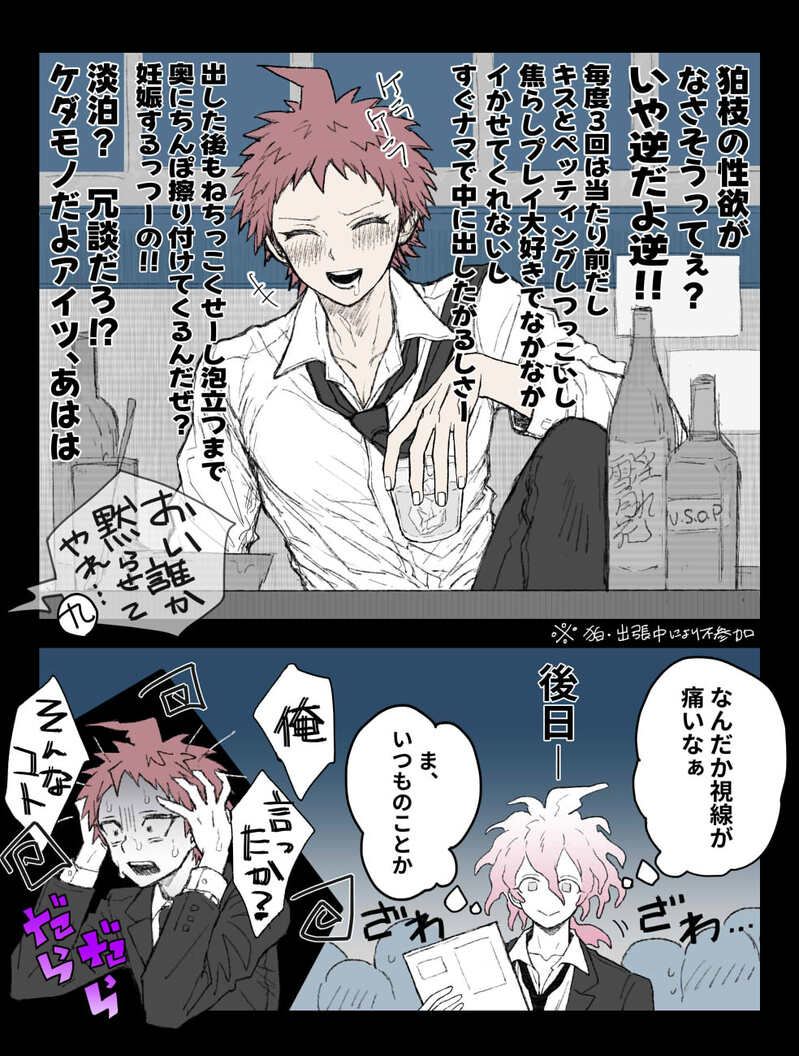この後狛枝にバレて正座でねちねち説教されるも半分は狛枝のせいなので腑に落ちない顔でいたら「なんならもっと詳しく教えちゃう?」「ボクは別に公開S〇Xしてもいいんだよ?」などと抜かされ涙目で土下座するハメになります。ほんとはここまで描きたかった