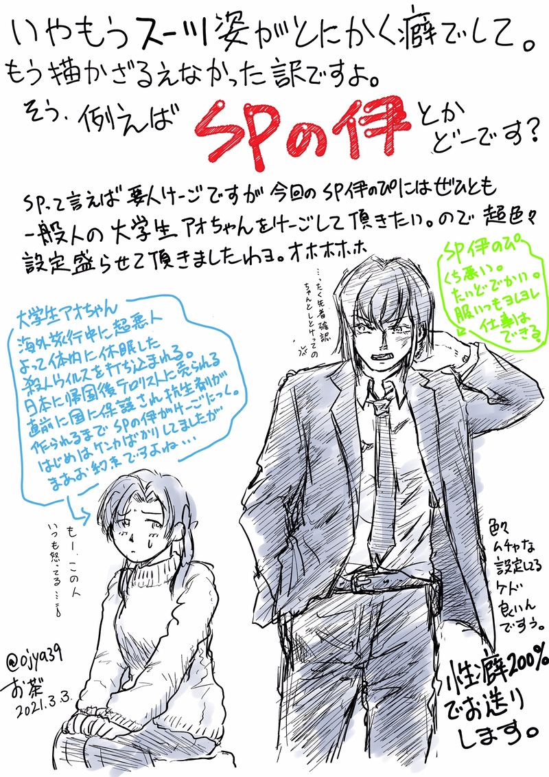 最近皆様がスーツ伊を描いて下さるんですよ…自分、スーツが超性癖でしてね。もう我慢出来なかったんですよ…えぇもう自分の自分による自分の為だけのスーツ伊‼︎ザカザカ描いただけだけど好きなモノ詰めたったぜ‼︎いきなり始まり終わります‼︎色々捏造、辻褄合わないのは許して♡
