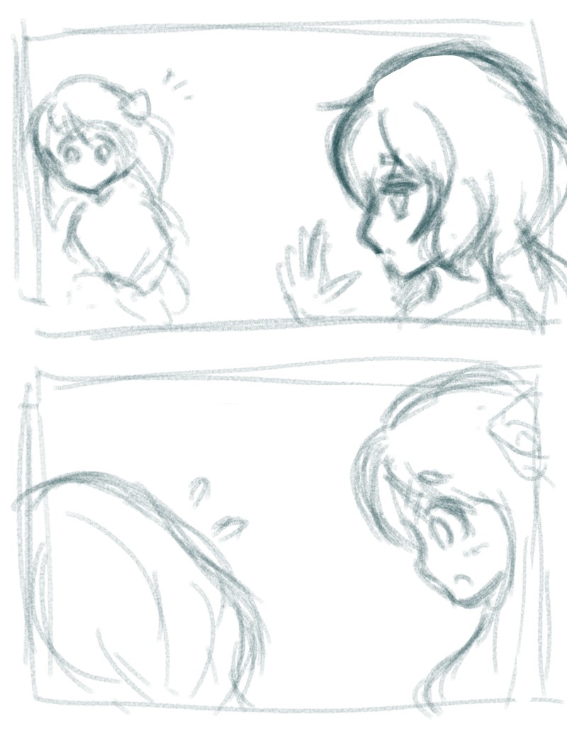 どういう展開なのか、頭の中で筋書きはできてますけど、どうセリフにすると収まりがいいか悩むところ、フムぅ…?