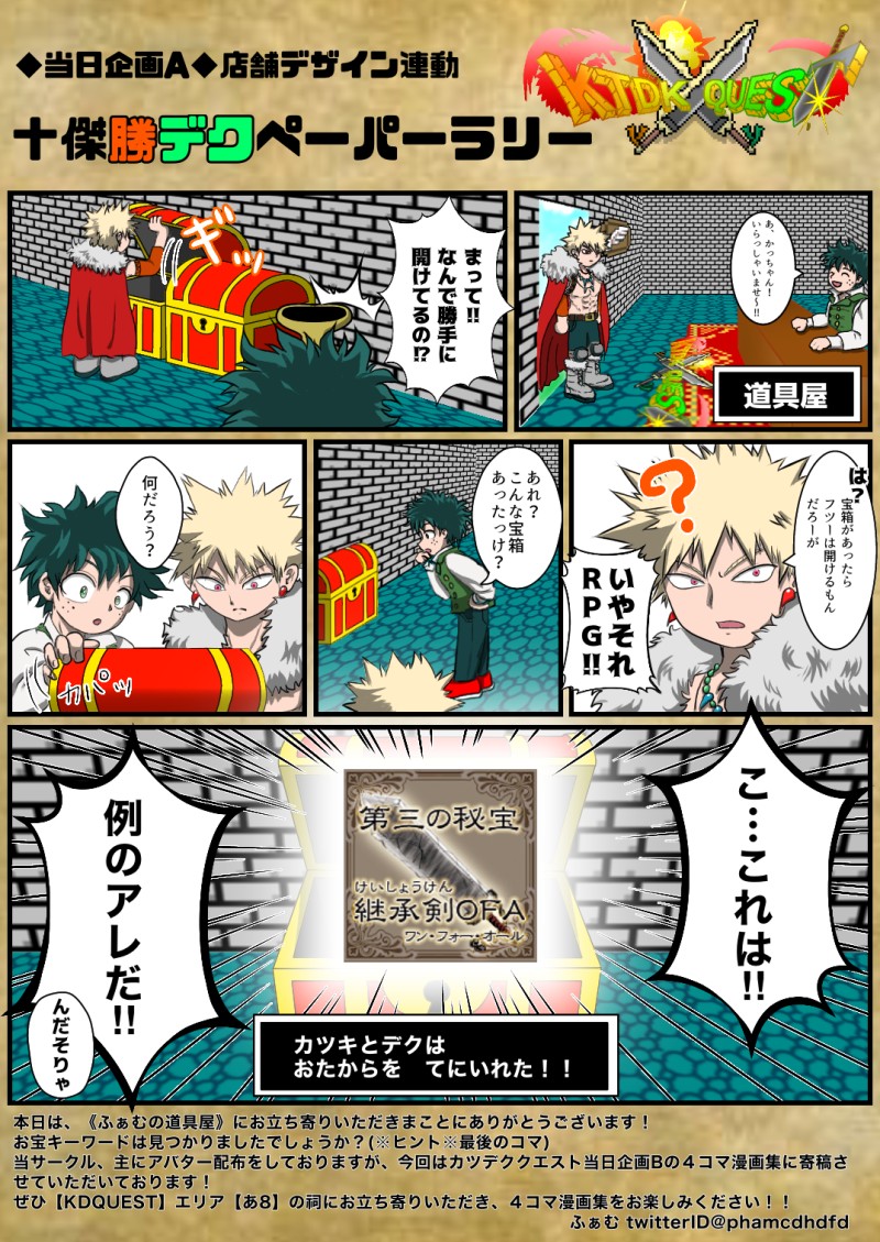 ふぁむ☆quiet followPAST《店舗デザイン連動 十傑勝デクペーパーラリー》用のペーパーとなります。3つ集めると素敵な景品の抽選に応募できる【宝のキーワード】のひとつがこちらのペーパーのどこかに隠されています!是非隅から隅までよくお読みになって見つけてみてください(^o^)/ Tap to full screen (size:1075x1518).Repost is prohibited Let's send reactions! freqpopularsnackothersPayment processing Replies from the creator Follow creator you care about!☆quiet follow ふぁむPAST2021年3月20日開催、十傑勝デクプチオンリー『KTDK QUEST』での4コマ漫画企画に寄稿させていただきました。 せっかくなのでこちらでも再掲させていただきます! 全8本です。 4 ふぁむPAST《店舗デザイン連動 十傑勝デクペーパーラリー》用のペーパーとなります。3つ集めると素敵な景品の抽選に応募できる【宝のキーワード】のひとつがこちらのペーパーのどこかに隠されています!是非隅から隅までよくお読みになって見つけてみてください(^o^)/ recommended works tmksrsDONEマイ大でにゃんにゃん♪ lusDONEブラネロwebオンリー「そういうことにしてるつもり!」13展示作品です。何でも許せる人向け、牛の乳を絞る感じの頭の悪い漫画です。 9 shibuba229107DOODLE孕期 4 おわりDOODLEいかないで ユーウMEMO kiki55661_2DOODLE荀彧X紫鸞(無名)彧紫從別人的荀令十里香獲得的靈感來源 806 yumekiri_trpgDONECoc「Ⅶ・peccāta」立ち絵 Mr.TDONE late_late121DOODLE #GODARCA爆速RTA合宿班一応GODARCAげんみ❌ 自陣〇今日描いた3枚まだまだ描いていきたいところ 3