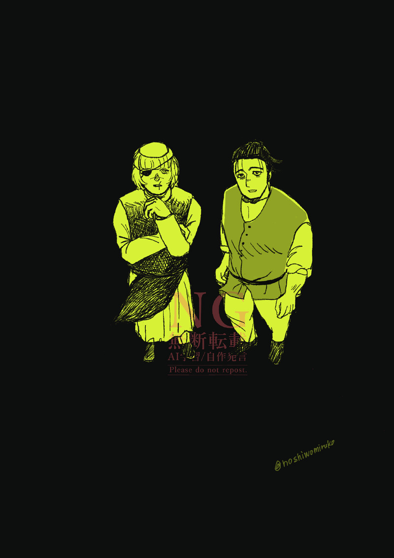 うおと先生の描いた電波望遠鏡のオクバデがすきで、宇宙船から見た2人ぼっち取り残されたようなオクバデを描こうと描いたら(一作目)、見てくれた方が「二人を見下ろす星」になったみたいだって空リプくださって、嬉しくて素敵でそれから残り二作もそんな感じのイラストにしました。