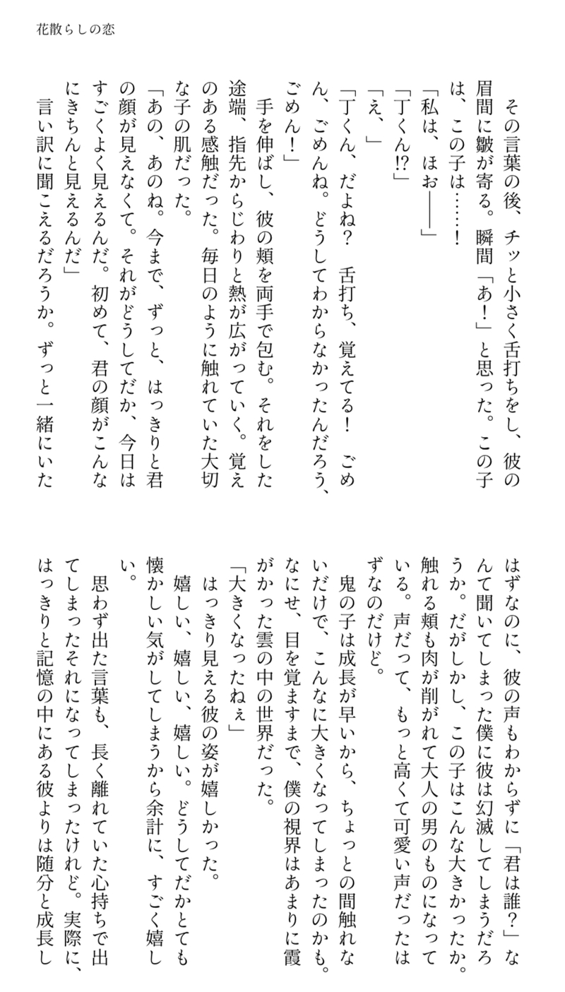 eggthing504☆quiet followPROGRESSピルグリム後編。現在の鬼様のことを忘れて丁くんだと思い込む白澤さん。この後当分丁くんだと思い込んだまま過ごすので、鬼様はつらい(この直前で千年の告白が実ってやっとお付き合いが始まったのに、という感じ) Tap to full screen (size:946x1662).Repost is prohibited Let's send reactions! freqpopularsnackothersPayment processing Replies from the creator Follow creator you care about!☆quiet follow eggthing504MOURNING支部に載せている「別れても好きな人」https://www.pixiv.net/novel/show.php?id=13914230の最初に書いていた分岐点。収拾がつかなくなり途中で断念して支部に載せてる形に変わりました 1356 eggthing504DOODLE(赤と黒)倫理観が壊れてる(善悪の判断ができない)殺し屋さんな白澤さんの話。地獄(仮)のマフィアに狙われてたりします。加々知さんは白澤さんの元の仕事(殺し屋)については把握済み。余談ですが最初の悲鳴は白澤さんが男の性器を食い千切った結果の悲鳴。 3 eggthing504DOODLE自分は唯一で番もいないので、妊娠だってできちゃうゾ!と思い込んで、鬼様を振り回す白澤さんの話(勿論できない)冒頭なので、まだ妊娠云々まだ出てこないけど既にちょっと振り回されてる。そのうちいつか完成する日がくるかもしれない。 3 eggthing504DOODLE(赤と黒)善悪の判断できなかったりとか倫理観が壊れてたりする白澤さんをひたすら書き続けている話の一部 2 eggthing504MOURNING夏の果て「半夏生」の一部。「春立つ」ラスト直後の帰宅のシーン。 2709 eggthing504MOURNING「貴方が帰るその日まで〜」の本文に入れなかった部分 1781 recommended works hatter0630DOODLE勇尾欠損(四肢截斷)尾形注意!!Password:18+?(yes/no) 2 𝕃𝔸𝔾𝕀DOODLEレザベネ🐺👍『水分補給』Xに上げたら警告受けたのでこっちに上げ直します😭解せぬ… 2 晴日(はるか)DONE『溺れる』※攻めフェ描写があります ご注意ください20歳以上ですか? 7308 yukiDOODLEきたおさ。北さんに蹂躙されたい治猫田さんの北治読んでから高校生きたおさ描きたい欲が抑えられなかった ゆめこぼしDONEきじょ〜いです 2 Dyu_ta_raMEMOファンミ千葉昼の部(2024/12/31)💚💛中心レポ浦島坂田船の大忘年会 15 しん☆INFO2025年 あけましておめでとうございます今年もどうかよろしくお願い致します!FANBOXにも全体公開でお年賀絵の下半身ブリーフver投稿していますhttps://kizayuma.fanbox.cc/posts/9133672限定では裸やブリーフファールカップver等色々投稿しています今年も頑張ります! カルメ焼きREHABILI令和6年12月31日 POI10977053PASTutnのpibbyパロまとめ消したり復活させたりを繰り返しているのでここで... 10