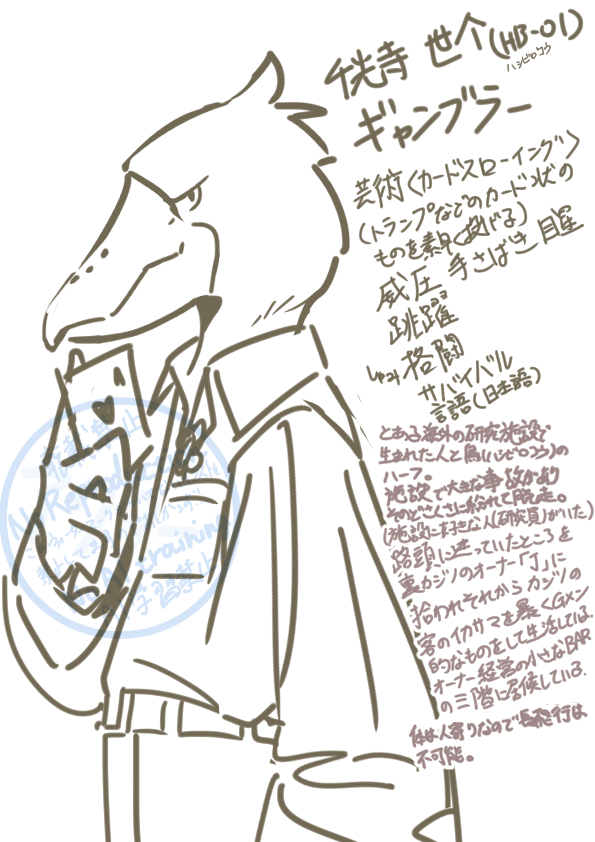 アクター☆quiet followDOODLE人外でTRPGセッションしてみたいなと思いとりあえずざっくりキャラデザしてみました!没になるかもなので前供養の意味も込めてこちらへ…(^^; #落書き graffiti #キャラデザ characterDesign Tap to full screen (size:595x842).Repost is prohibited Let's send reactions! freqpopularsnackothersPayment processing Replies from the creator Follow creator you care about!☆quiet follow アクターDONEデフォルメは出来たら後日…! アクターPROGRESS色紙描きたいの忘れてて人にあげる絵を描いてました(^^; アクターDONE初めての色紙書きに試行錯誤… アクターPROGRESSいつもとかなり違う絵柄に挑戦…!グッズイラストなど装飾用途に使う絵柄を研究してます( ..)φ アクターPROGRESS見直し前に!自分の理想のグッズイラストの絵柄に一歩近づいたかと…! アクターMOURNING※シピ「ちゃん」呼び要注意唐突に数年前に描いて没にしたグノーシア漫画を投稿!補足も数年前のものです!脳ピぬるま湯構成でループ回してた時期があったので別データ併せてもう1000ループはしてると思われます…(^^; 6 related works MUToUDOODLEオリキャラでアイドルを作ってた3年前.衣装デザインもしてて久しぶりに描きたくなった.だが名前がない。 ikuse_hinanoMAIKING 2 鮭川しゃけSPOILERシノビガミ「アップル・アリーナ・アトラクト」PC2ラフ。シナリオバレ含むので未通過×。 シヴァDOODLE昨日のらくがきを知人に見せたら「はいてないね」と言われてしまったので弁解しますとこうなってます nominoPROGRESS生えてる感が難しくてあんまり進んでない キナコDOODLESkebでご依頼いただいてるキャラのラフです。ミドリガメのタウル(戦士…格闘家イメージです)くんと兎獣人(ヒーラー)ちゃん♪ 3 つくねんMOURNING折角だから圧政くんのデザインを作り直していたけど、何してもしっくりこない tamagotrpgMEMO思い立ったが吉なのでヤドリギ探索者練ってたよ 2 鮭川しゃけSPOILERシノビガミ「裏界の彼方」PC2。シナリオバレ含むので未通過×。 recommended works セルコPROGRESS武蔵は暑くなると小次郎に絡みだしてしまう漫画を描いてます(要約) lfDONEローゼンメイデン 金糸雀 雑多な人PROGRESS色分けしてる理由がなぞ 3 チェラテTRAINING漫画練習なう(2019/12/26 19:05:33)平和片想いの話。目の前に降ってくる最推しは天使の様でした スピカDONEギャグマンガ日和20周年おめでとうございます!! wata14flowerDOODLE天遊本編がしんどいので派生たちをぽいぽい。オリもじ&オリキャラ。刀→きるりっと(女)刃→やいばーな(男) 3 樺練(かばねり)DOODLEキャラデザを簡略化の方向で進めている。■そういえば今までのアカウントのポイピクにログインできました。一体なんだったんだ。 7 kinottaDONE眼鏡の日!ハロウィンぽいSDで描きました。 gottin_miteruMOURNING人外さんをまとめてみたよ 10