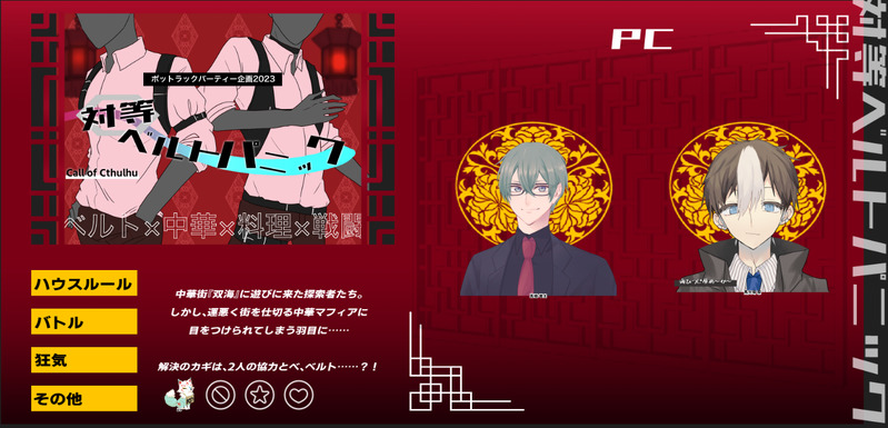 dropforyou☆quiet followDOODLECoC「対等ベルトパニック」PC1_高橋 竜太(ふたばさん)PC2_馬欠場 駆(れとさん)KP_りゆうエンドAで生還でした~。もしかしたら初めてドタバタなシナリオ回したかも🤔きっと二人ともベルト似合うんだろうな~ってやりながら思ってました(笑)お二人ともありがとうございました! #卓報告 tabletopReport ##りゆうTRPG Tap to full screen (size:1362x656).Repost is prohibited Let's send reactions! freqpopularsnackothersPayment processing Replies from the creator Follow creator you care about!☆quiet follow dropforyouMEMOCoC「bloodaze」HO1_浅木 翔真(きおさん)HO2_鬼塚 夕露(りゆう)KP_れとさんエンドAで両生還でした。出目が二人とも沼ってて、KPにめちゃめちゃ迷惑かけてしまった…すみませんでした><時間がたつにつれて、性格がヘタレていき、幼い感じになったのは何でなのか…🤔お二人とも、ありがとうございました! dropforyouDOODLECoC「対等ベルトパニック」PC1_高橋 竜太(ふたばさん)PC2_馬欠場 駆(れとさん)KP_りゆうエンドAで生還でした~。もしかしたら初めてドタバタなシナリオ回したかも🤔きっと二人ともベルト似合うんだろうな~ってやりながら思ってました(笑)お二人ともありがとうございました! dropforyouDOODLECoC「探偵とカオス理論」、「助手レンタルされる」PC_高橋 翠(樹夜さん)KPC_芹沢 樹(りゆう)カッコいい探偵先生といろんなシナリオ通ってきました~。なんだかんだ、良いコンビだな~って思いながらKPしてました(笑)樹夜さん、回っていただきありがとうございました! 2 dropforyouMEMOCoC「探偵の最終定理」PC_高橋 翠(樹夜さん)無事、終了~。こっちは初めて回したので、とてもドキドキしました。連続で通過いただき、ありがとうございます😊 dropforyouMEMOCoC「探偵方程式」PC_高橋 翠(樹夜さん)KPC_芹沢 樹(りゆう)無事、終了しました!迷いながらもしっかり調査していただけて、よかったです!ありがとうございました。 dropforyouMEMOCoC「心は焦土」HO1_有島 香怜(りゆう)HO2_紫藤 海人(原っぱさん)KP_れとさんエンドAにて、無事両生還でした!何をしてもほめてくれる彼氏の扱いに慣れてるけど、本当は自分もちゃんと好きなんだよってことがRPで来てれば・・いいな。お二人ともありがとうございました! related works ヤマシタSPOILERCoC『OBLIVION』制作:犬点書店 様KP: ヤマシタHO1:Arthur Edward Wellesley /なつこHO2: Lucian Azure Beckett/るもちゃんHO3: Albert Tim Illustrious/まげる先輩HO4: Lucas Illustrious/ろびん先輩END-Ω 全生還プリンセスカレッジよ 無窮なれ ZUTTOGAMESDOODLECoC「Gin・Craze」 2525hinoesenINFO❚ ᴄᴏᴄ ᴛʀᴘɢ✦ 星が落ちた日|𝐄𝐍𝐃-𝟏𝐊𝐏 - ひのえ𝐏𝐋▸ 𝐇𝐎𝟏 - 飌雷 嗄綑様▸ 𝐇𝐎𝟐 - 日向様 Zun_KomameINFO『REGlCiDE』作/犬点書店 様KP:BisqueさんPL:三井圭さん(セレスティン・ムーガイ) ベジタリあんどうさん(ルイス・スミス) こまめ(ガラハッド・ファーノン) 希崎ひねもさん(パーシヴァル・ファーノン)生還にて終了です!よかった~~~!!!次はオブブブ!!!!💪💪⚠️ネタバレ落書きアリ⚠️PW:ok 8 ヤマシタSPOILERCoC『sleep-walker』制作:蛙屋 様KPレスPC:Theodore・UttersonエンドB→D(処理ミスを発見したので)出目がカス! 睡眠の質もカス! かれいINFOCoc【ゆれるフリルにくちづけて】黒柄 エチル様・作PC/PL:カエデ/ちゃろKPC/KP:赤城 駿河/かれいEND.B にてシナリオエンド 2 ヤマシタSPOILERCoC『REGICiDE』制作:犬点書店 様KP: ヤマシタHO1:Arthur Edward Wellesley /なつこHO2: Lucian Azure Beckett/るもちゃんHO3: Albert Tim Illustrious/まげる先輩HO4: Lucas Illustrious/ろびん先輩END-A 全生還プリンセスハウスよ 永劫なれ ヤマシタSPOILERCoC『ここ掘れ!メルゴー!穴掘りカレッジ!』制作:犬点書店 様KP: ヤマシタHO1:Arthur Edward Wellesley /なつこHO2: Lucian Azure Beckett/るもちゃんHO3: Albert Tim Illustrious/まげる先輩HO4: Lucas Illustrious/ろびん先輩プリンセスハウスよ ムキムキなれ text_7DOODLE2025.07.09「黒いガレー船」PL まいまいさん、えびさん、ももしゃさん、獅子飼いさん温水 海斗、温水海里、紺野 秋永、葉山 湊 recommended works kasyumi133DOODLE魔女ジュンX人类ひよ(上) 中国语注意 6 さんじゅうななDOODLE😈サ♀ 5 お散歩牛乳DONE⚠️肌色多め・ラィヵがビキニを着ていますハート目差分あり 3 전립선마스터DONE드씹 4컷만화 (日本語訳あります) 2 JuliSDOODLE寒色悪魔パロ(マサトキ)SL撮影「Sugary Little Devil Halloween」のマサトがすきだから、イベント「Chords of Feelings」の悪魔エレジー(トキヤ)は受けすぎ...妄想暴走しました。 13 denka_oisi_yoDONE季直 18↑?y/n 3556 iti_tfDOODLEAスィンとフェラ&えっち※人間夢主 ひゅうが8番街DOODLEショタT(妄想)ショートヘアで真ん中分けやったらかわええやんっていうだけ 2 nny_no_trpgDOODLEピリオドアズール2024/12/2~5KP/藤咲PL/ななや、星子