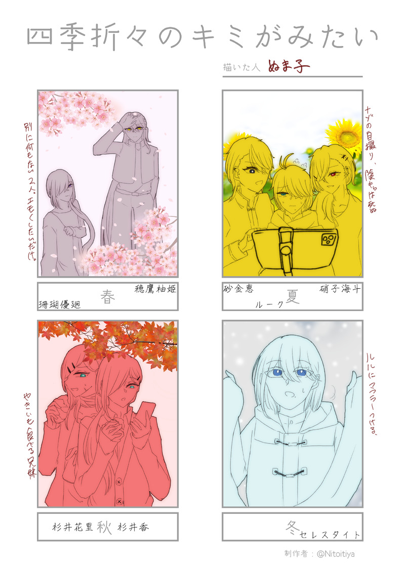 Leaf3939_2☆quiet followDOODLE四季折々の髪色のキャラが見たい!実際は少し違うけど、まとめたよ Tap to full screen (size:2480x3508).Repost is prohibited Let's send reactions! freqpopularsnackothersPayment processing Replies from the creator Follow creator you care about!☆quiet follow Leaf3939_2DONE「ダイダイダイダイダイキライ」聖桜姫と黒瀬碧(よその子)、似合いすぎるだろ!!!!!と思った。描いた。 Leaf3939_2DOODLE烏が群れては極彩色 HO3若干無彩色のネタバレあり。アサシンやってる柚姫とか見たいよな。なんですかアサシンやってる柚姫って? Leaf3939_2DOODLE都市伝説解体センター。全人類やろう!!!!! Leaf3939_2DOODLE四季折々の髪色のキャラが見たい!実際は少し違うけど、まとめたよ Leaf3939_2DONEネタバレはないです。口渇ルルパ。ココフォリア画面とルパ(セレスタイト)、ルル(ジェット)の立ち絵 3 Leaf3939_2DOODLEソプスクHO1、秘匿シナリオバレなし。ぬるいけどすけべな思考で描きました(正直者)モブと甲斐凪音。ここ最近ずっとこのシチュについて考えてる。痕つけたのはモブでもモブ以外でもありかもな………🤔🤔🤔 2 recommended works プリンごちょーDONEカクイザちゃんカクちゃんは尻に敷かれるタイプとみた 雪雨風樹INFO一応お知らせしときます。今現在pixiv限定で、「マイピク」申請者にのみゴウコハ小説の表紙イラスト4枚のネップリ宣伝中です✌こちらに載せた画像は「マイピク」申請者用の為、ゴウコハ民以外での保存はご遠慮させていただきますm(_ _)m今年いっぱいでゴウコハ作品は終わりにいたします故、来年以降は全く新作は出ません。今年限りとなりますので「マイピク申請」希望者はpixivにて申し出下さい。 1i1ys2o0DOODLE良い子には赤サンタ悪い子には黒サンタが来るらしい 2 雪風(ゆきかぜ)。DONE翠くんにクリスマスプレゼント!!ヾ(*´∀`*)ノリボンはこちらからお借りしましたhttps://commons.nicovideo.jp/works/nc264493 2 2号店さん。DOODLEクリスマスイラストと何気に自分用の設定を…。あくまで我が子のことなんで勘違いしないでください…。 2 _zwei_zweiMEMO「刑事、怖い話をする。」PL:らびさん PC:杉浦 凌也 (すぎうら りょうや)PL:むぎさん PC:月城 七星 (つきしろ ななせ)PL:ツヴァイ PC:結城 詩音 (ゆうきしおん)エンド3 シナリオクリア庭師の継続で回ってきました!本当に突発卓だったけど思いのほか面白い!ただ怖い話をするってシンプルなのにちゃんとクトゥルフでいいなって思った! 森野クマ3PROGRESS今日の進歩464身体の部分間違ってると思うからそこだけやり直しかな cmerc__DOODLE"The Amazing Super Awesome Benimaru Collage"「すごい超すごい紅丸コラージュ」is finally completed!! 🥳🎉💕Thank you to everyone who took the time to draw a Benimaru for this collage! 🥹🥹🫶Please look at it~ popopochidayoDOODLE誰も見てないところで泣いていたのかな