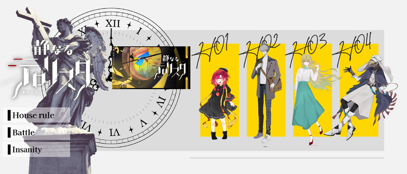 ゆきかげ☆quiet followMEMOCOC「静なるテロリスタ」3生還1ロストにて終幕 Tap to full screen (size:2741x1172).Repost is prohibited Let's send reactions! freqpopularsnackothersPayment processing Replies from the creator Follow creator you care about!☆quiet follow ゆきかげMEMO「海石榴邸殺人事件」出演(敬称略)篝 壱桜/Layle彼ノ瀬 夜蝶/ゆきかげ両生還 ゆきかげMEMOCOC「秋晴れに神を見る」「日常のすすめ case01/ぎゅっとして」出演(敬称略)篝 壱桜/Layle彼ノ瀬 夜蝶/ゆきかげ両生還 2 ゆきかげMEMOCOC「灰と甘露 〜柳は緑、花は紅〜」出演(敬称略)HO1七歩蛇:七竈 緋美HO2絡新婦:朱本 絃月HO3稲荷空狐:神孤崎 亜孤HO4漠:鈴麗HO5橋姫:篝 壱桜HO6蝶化身:彼ノ瀬 夜蝶4生還2ロスト ゆきかげINFOCOC「VOID」HO1新米刑事千代鶴 結立ち絵制作:遊山しゃき様(https://skima.jp/profile?id=135682)ディスプレイ素材:塔様(https://x.com/araragi_e/status/1680971635560685568) ゆきかげSPOILERかいマホ 現行×未通過×かいマホ自陣ぬいぐるみ風ミニキャラ 2 ゆきかげMEMOCOC「獣のディーヴァ」全生還