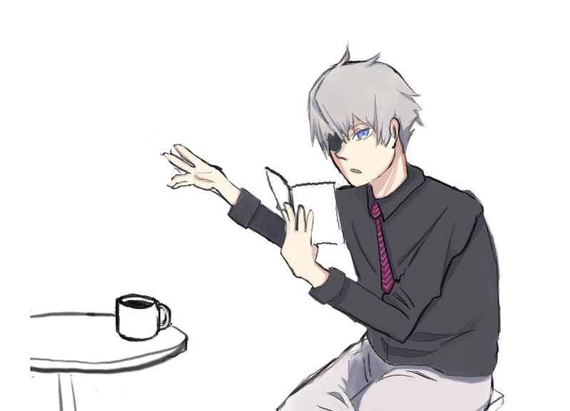 読書中のスリーがコーヒーを飲もうと手を伸ばした瞬間に声かけられたところ。