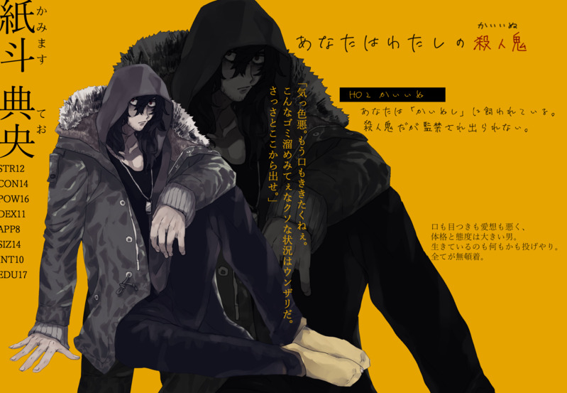 横田ひかる☆quiet followDONE紙斗 典央※2021/11/5更新立ち絵+作業工程 #あなたはわたしの殺人鬼 youAreMyMurderer show all(+2 images) Tap to full screen (size:2402x1662).Repost is prohibited Let's send reactions! freqpopularsnackothersPayment processing Replies from the creator Follow creator you care about!☆quiet follow 横田ひかるDOODLE心臓がちょっとはやく動くだけVOID現行・未通過× 3 横田ひかるSPOILER「町葬屋怪異譚」第一話までのネタバレ落書き、ほんとに落書き現行・未通過××× 同卓さんもちょっとまって! 5 横田ひかるDONE「正偽のイデア」卓中使用スチル 現行・未通過× ネタバレしかない 5 横田ひかるDONE小鴉 凪ヲ「人間失覚殺人癖」HO壱 2 横田ひかるDONE辻村スグル/矢上 宗一「スイサイダルアクト」HO3+HOD 4 横田ひかるDONE桂 十六夜「堕獄の夜籠り、断つ双刀」HO1武者HO2鬼は二次発酵さんからお借りしました 3 related works oinaTRPGDOODLEあなたはわたしの殺人鬼 現行・未通過✖南茅ちゃんが描いてくださったエンドカードです!最高最高最高LOVE...。セッション内のネタバレというよりBL要素あるためワンクッション置いています! 横田ひかるDONE紙斗 典央※2021/11/5更新立ち絵+作業工程 3 シマダDOODLEかいいぬしネタバレなし 3 recommended works kanonn_yPASTCoC「デウス・エクス・マキナは死んだ」の自探索者のノアさんです。キャラデザ迷走しまくりつつようやく固まったキャラなのでお気に入りです…。しかしロストしました(◔‿ゝ◔) エヘ続編楽しみにしてます… 10 maguro_is_tuna8MEMO『とある幸せな家族の話』作:さんとなな様KP:らびさんHO1:ふらっとHO2:八坂まぐろHO3:雪うさぎHO4:春ちゃん1生還3ロスです。初めてのロストを浴びました。滝川家、みんな愛しています。#とある滝川家 j_ms_hinomalDOODLEすみませんこれ完全に下書きの状態だったの忘れてて字が私しか読めなくていいやーって感じで適当なんです………それでもよければ見てください。※ネタバレにご注意下さいなお、こちらのシーンを見てしまうとHO2のキャラをシナリオ内でやる際内容がわかってしまうかもしれません。十分ご自分で理解した上でご覧ください。こちらは一切の責任を取りません。 2 maguro_is_tuna8MEMO「デウス・エクス・マキナは死んだ」 作:茶々丸様KP:半子HO1:八坂まぐろ(ノア)HO2:LEi6(ランプ=シューノス)片ロスでシナリオエンドです。生還してしまった…ランプぅ…ランプぅ…どうして…ランプぅ…半子KPありがとう~~;; 横田ひかるDONEダニエル・マクルーハン※2021/9/28更新NapFrappe HO STAR/国家警察 立ち絵(新・旧)+新立ち絵作業工程+クリファン差分 7 横田ひかるDONE時雨沢 陽奈※2021/10/28更新「とある幸せな家族の話」HO2母親立ち絵+クリファン差分+作業工程 5 霧島。DONEとある幸せな家族の話 HO3兄です~~~~!生還するぞ~! xxxkioxxxMEMOアイキャッチ決定戦の雑魚争い rntnxinranDOODLE雨夜 18