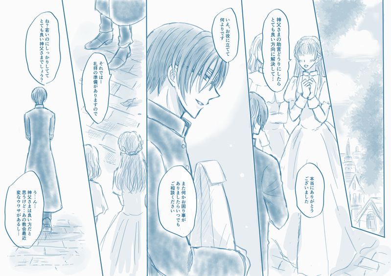 フリスタツアーのケンケンの衣装がカソックぽく見えるな〜‥似合うな?から生まれた謎の雰囲気パロラクガキです😅