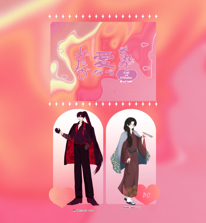 zatugori_trpg16☆ติดตามเงียบๆเสร็จแล้ว『それが「愛」ならしかたない!』作:目黒俊様ロトカ・ヴォルテラの愛堕討ち継続KP/KPC-雑種ゴリラ/龍頭 志紅PL/PC-うめ/狗咬 慈祈敬称略シナリオクリア「…そうかよ」 แตะเพื่อเต็มหน้าจอ (ขนาด:702x760)ไม่พิมพ์ซ้ำ มาส่งปฏิกิริยากัน! บ่อยเป็นที่นิยมอาหารว่างคนอื่นการประมวลผลการชำระเงิน คำตอบจากผู้สร้าง ติดตามครีเอเตอร์ที่คุณห่วงใย☆ติดตามเงียบๆ zatugori_trpg16เสร็จแล้ว『よる花舌』作:朝起きて白湯様KP/KPC-いぬいぬい/桃尾 艽PL/PC-雑種ゴリラ/蛎灰谷 零敬称略シナリオクリア「それじゃあ、艽。今日はなんの話をしようか。」 zatugori_trpg16เสร็จแล้ว『傷を飾る』/たぬたぬ堂様KP/KPC-雑種ゴリラ/沢喰 蜂夜 (さわばみ はちや)PL/PC-村上/創伯 斗華 (そうはく とうか)敬称略シナリオクリア「オーナー、本当に似合ってます」 zatugori_trpg16เสร็จแล้ว『星に声は届かない』/めりぼ様ロトカ・ヴォルテラの愛堕討ち継続KP:うめKPC:狗咬 慈祈PL:雑種ゴリラPC:龍頭 志紅シナリオクリア「あ?…別にいい。気にすんな」 zatugori_trpg16เสร็จแล้ว『怪依刑事』作:プロテ院 様KP:いぬいぬいHO1:華月 煌/雑種ゴリラHO2:相良/村上シナリオクリア「うむうむ。一件落着だな☆吾輩の手にかかればどんな事件もらくらく解決ということだ☆相良!今度もよろしく頼むぞ☆」 zatugori_trpg16เสร็จแล้ว『それが「愛」ならしかたない!』作:目黒俊様KP/KPC-雑種ゴリラ/片瀬 颯太PL/PC-いぬいぬい/早武 叶人敬称略シナリオクリア「あは、すみませ〜ん。ちょっとやりすぎちゃいましたかね?」 zatugori_trpg16เสร็จแล้ว『KPCがバニー姿でポールに繋がれているんだが?!』作:みっ。様ロトカ・ヴォルテラの愛堕討ち継続KP うめKPC 狗咬 慈祈PL 雑種ゴリラPC 龍頭 志紅敬称略シナリオクリア「……ぜってぇ言わねぇ」