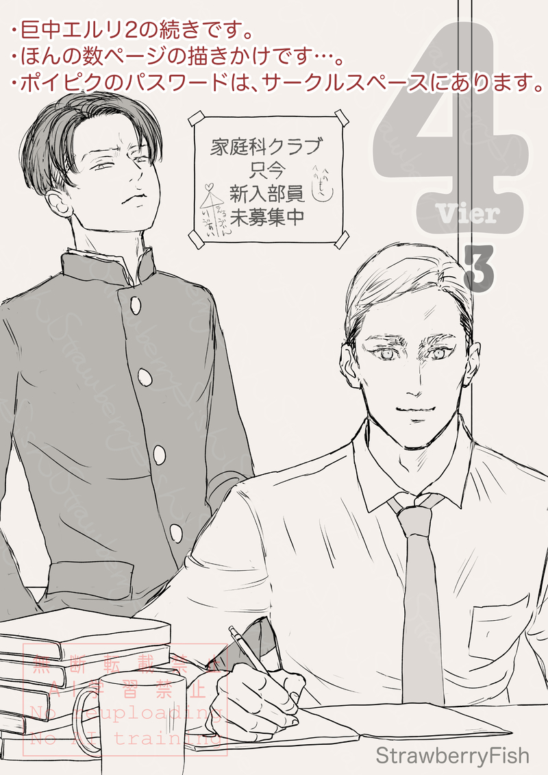 StrawberryFish☆quiet followPROGRESS2025年11月14日〜16日 現パロwebオンリー「いいエルリの日」・巨中エルリ2の続きです。・ほんの数ページの描きかけです。・パスワードはイチゴサカナのスペースにあります。 show hide show all(+5 images) Tap to full screen (size:3969x5613).Repost is prohibited Let's send reactions! freqpopularsnackothersPayment processing Replies from the creator Follow creator you care about!☆quiet follow StrawberryFishPROGRESS2025年11月14日〜16日 現パロwebオンリー「いいエルリの日」・巨中エルリ2の続きです。・ほんの数ページの描きかけです。・パスワードはイチゴサカナのスペースにあります。 6 StrawberryFishPROGRESS懐かれ分隊長14⚠️そこまで肌色ではないけど若干肌色 4 StrawberryFishDOODLE『官能小説を嗜むエルリ』オマケのオマケpassword:eruri’s middle birthday (4digits) StrawberryFishDOODLEガブッエルリの続き(再)password: eruri’s middle birthday (4digits) 2 StrawberryFishPROGRESS分x新兵エルリ10『宿屋にて』③password: Eruri’s Middle Birthday (4 digits, month first) 6 StrawberryFishPROGRESS分x新兵エルリ10『宿屋にて』②password: Eruri’s Middle Birthday (4 digits, month first)①→ https://x.com/15fish14/status/1904729250470453673?s=61 6